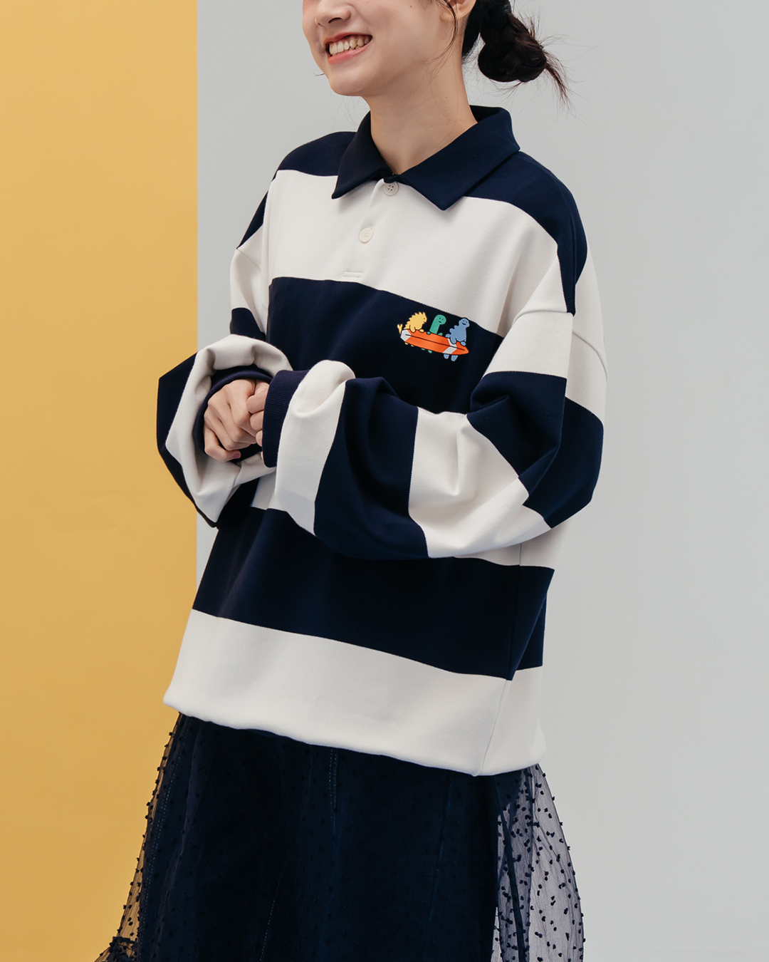P/D幽靈 幽靈印圖條紋長袖上衣