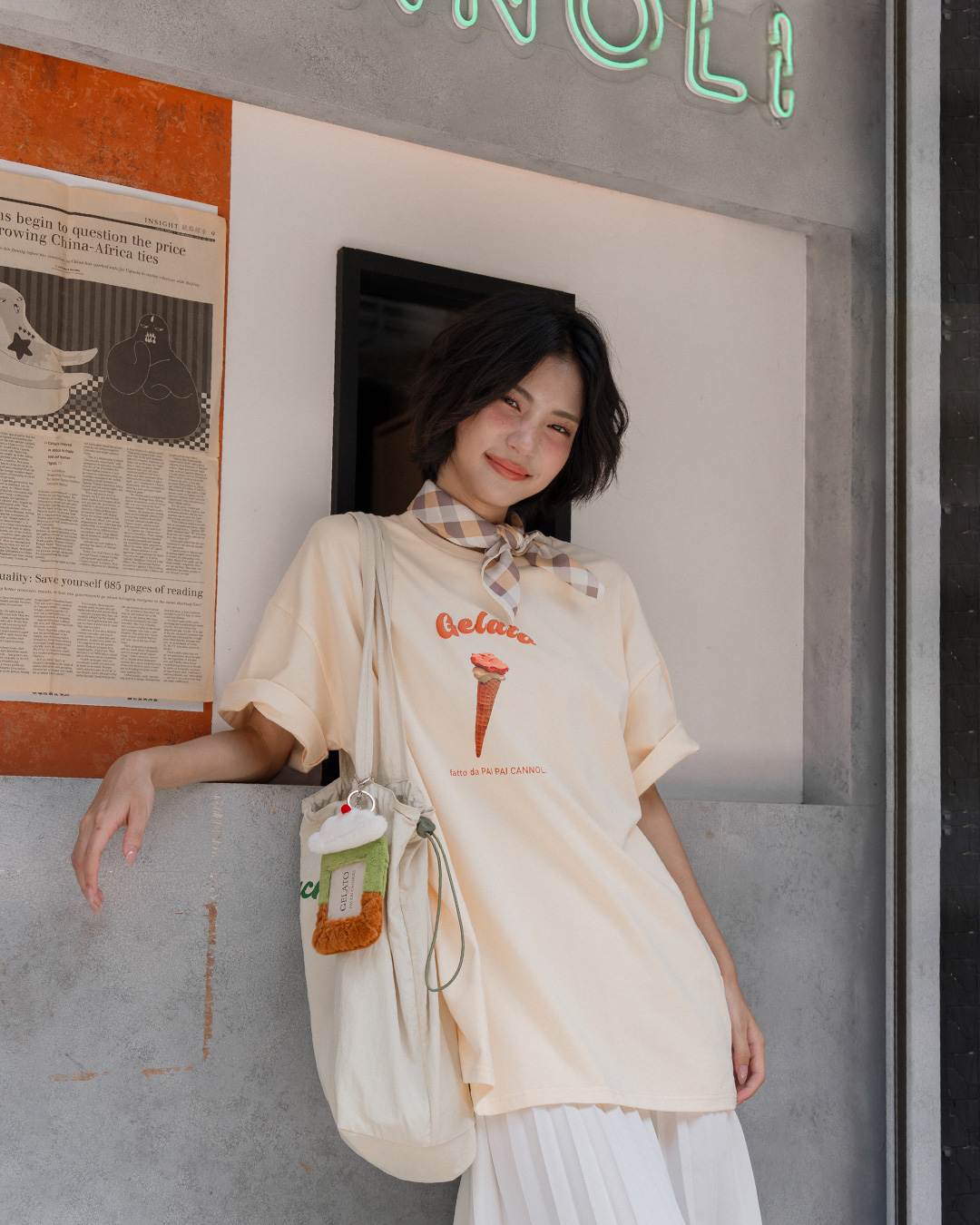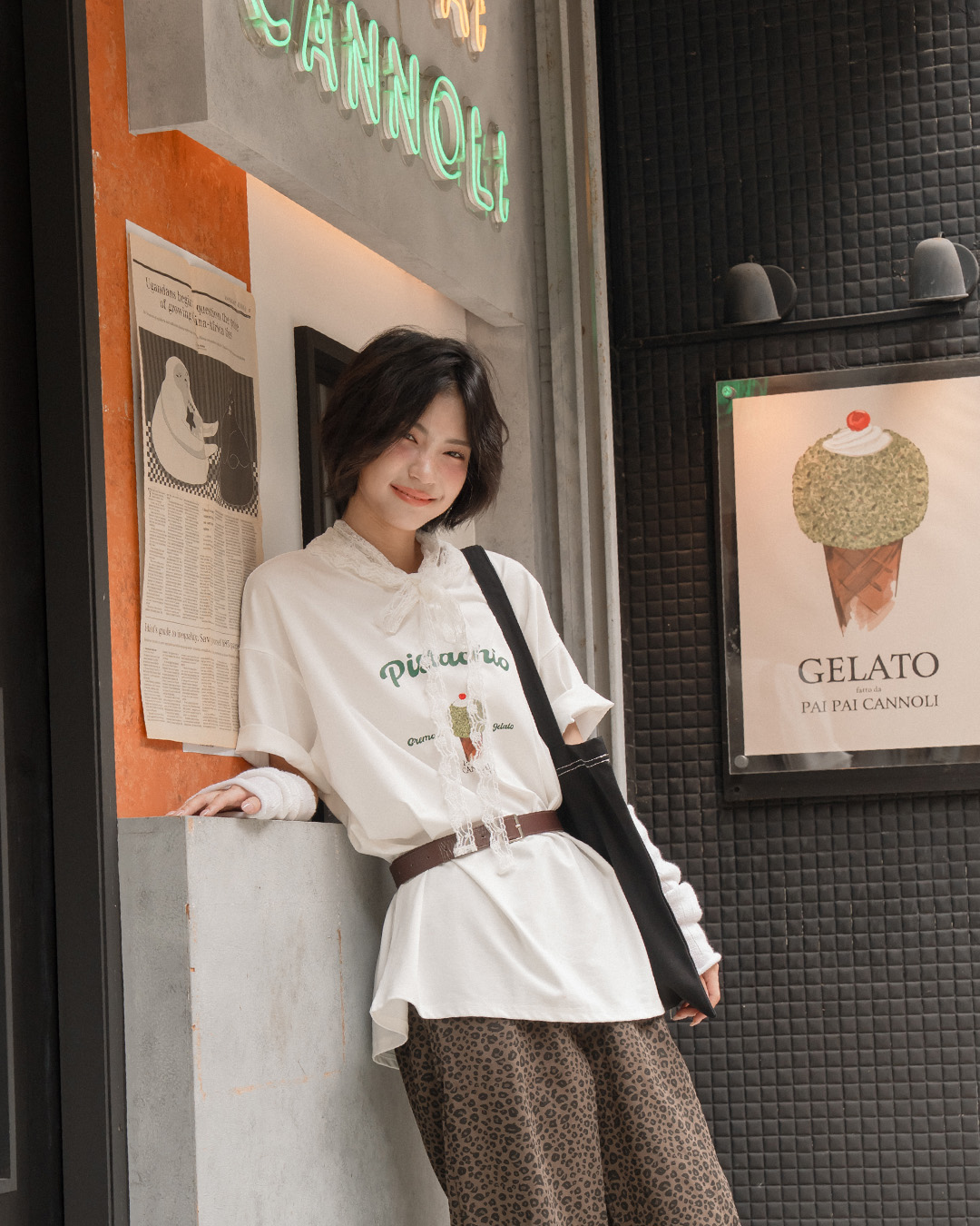 PAIPAI 開心果冰淇淋印圖寬版上衣 兩色售