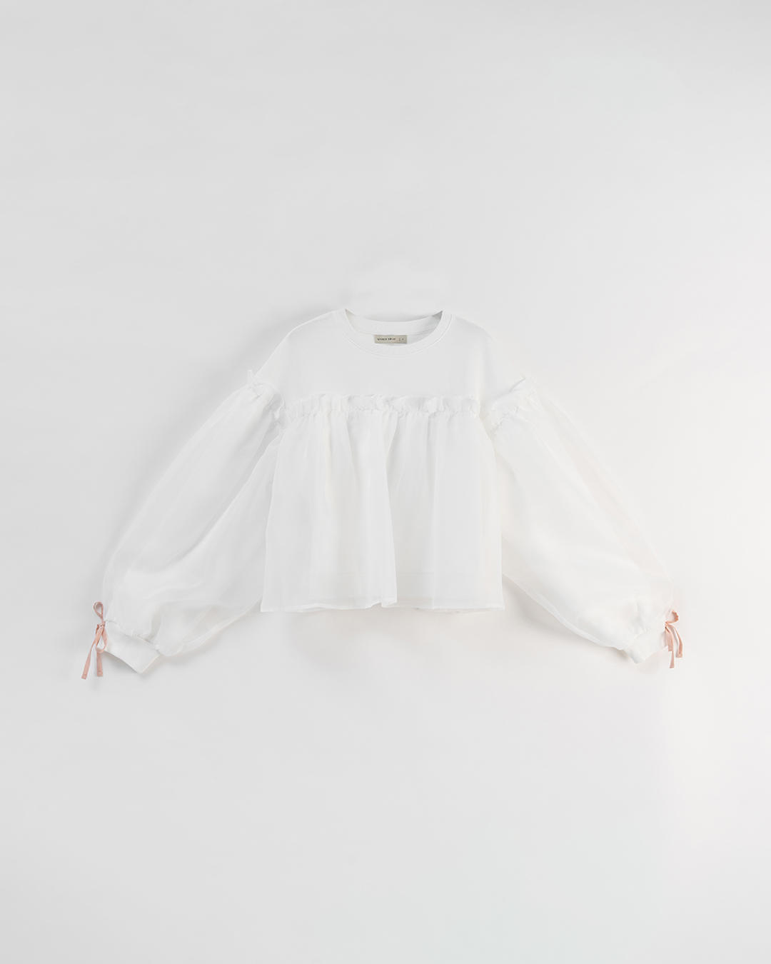 姵萱聯名 澎袖透紗綁帶異材質上衣-米白 S/M