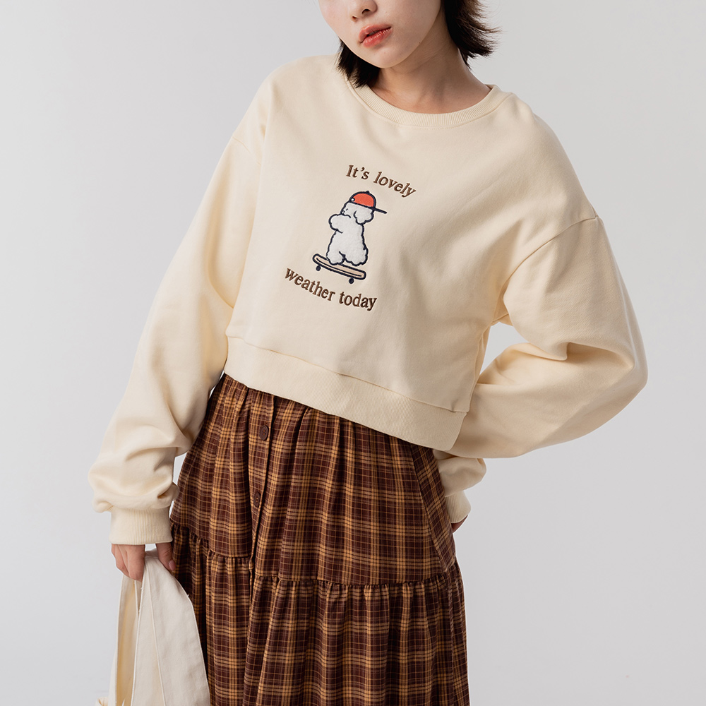 Tombonia 狗狗情書刺繡短版上衣 兩色售