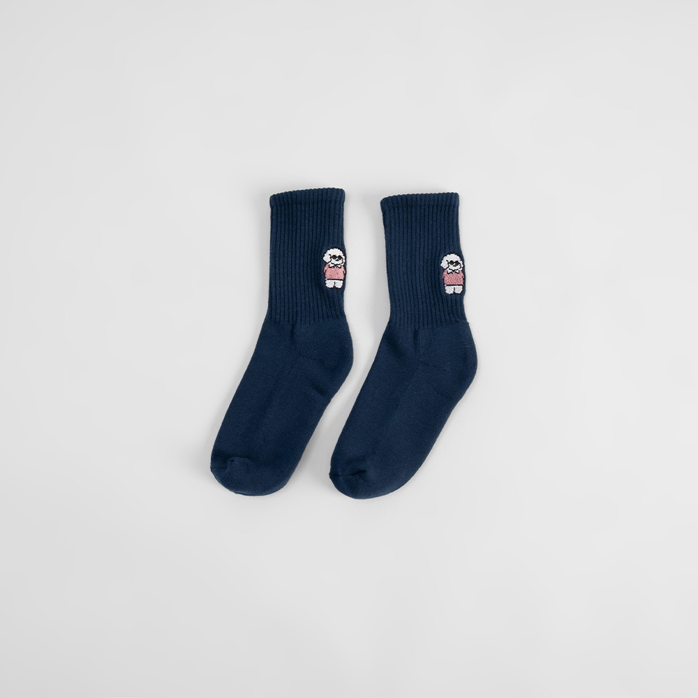 Tombonia 狗狗刺繡厚底中筒襪 三色售