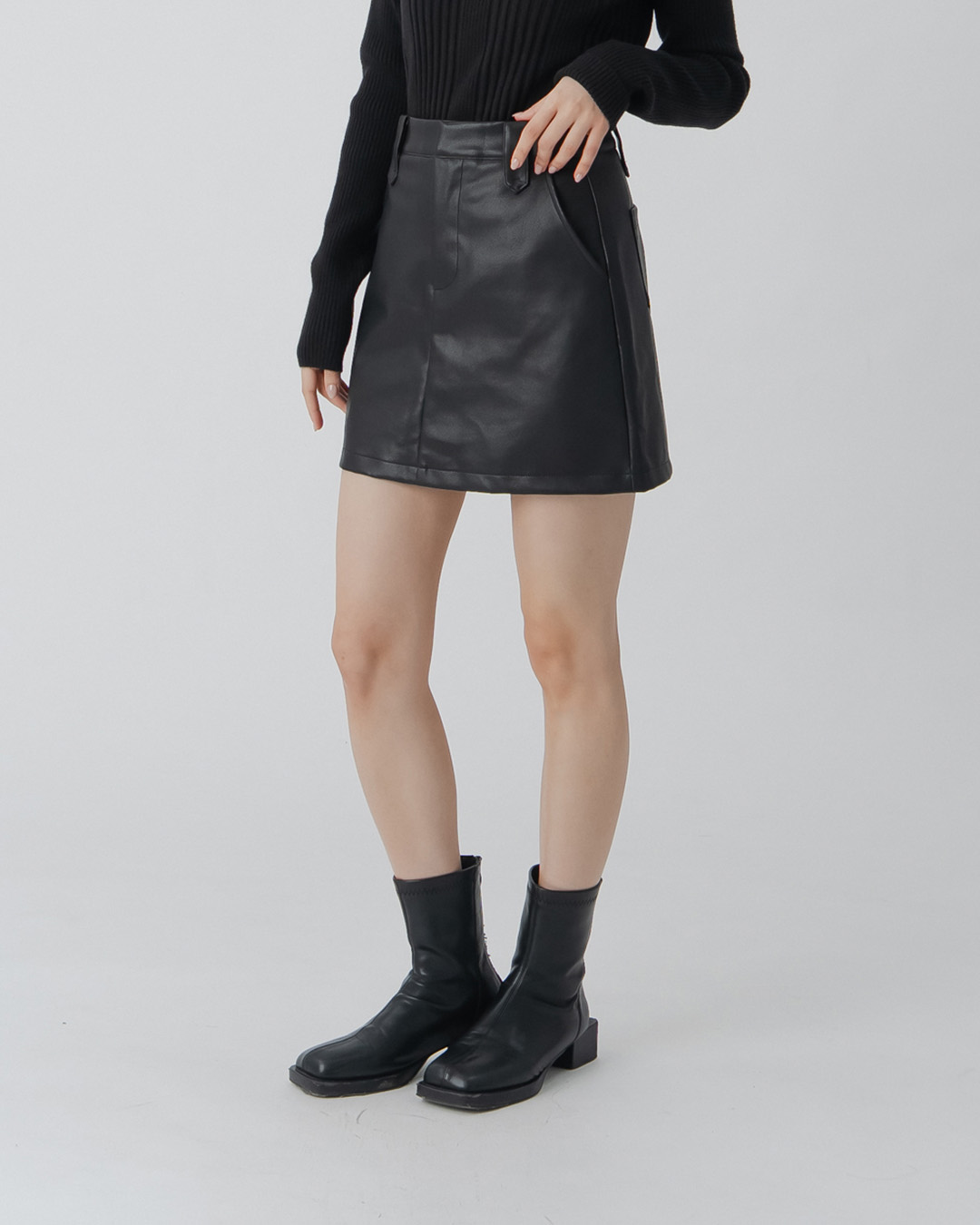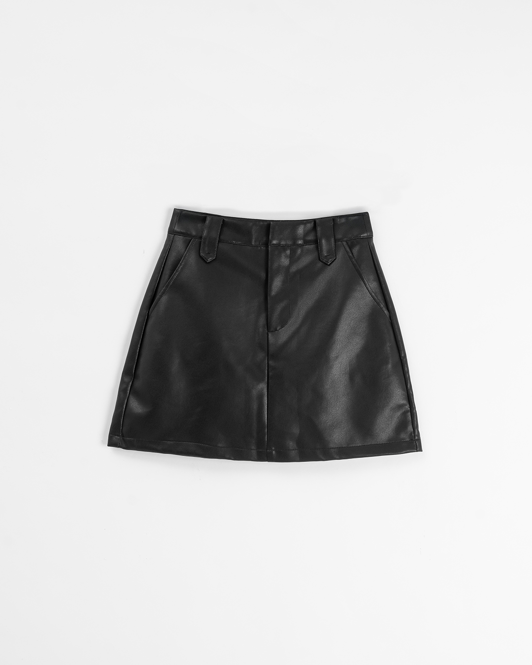 質感素面設計A字皮革短裙-黑 S/M/L