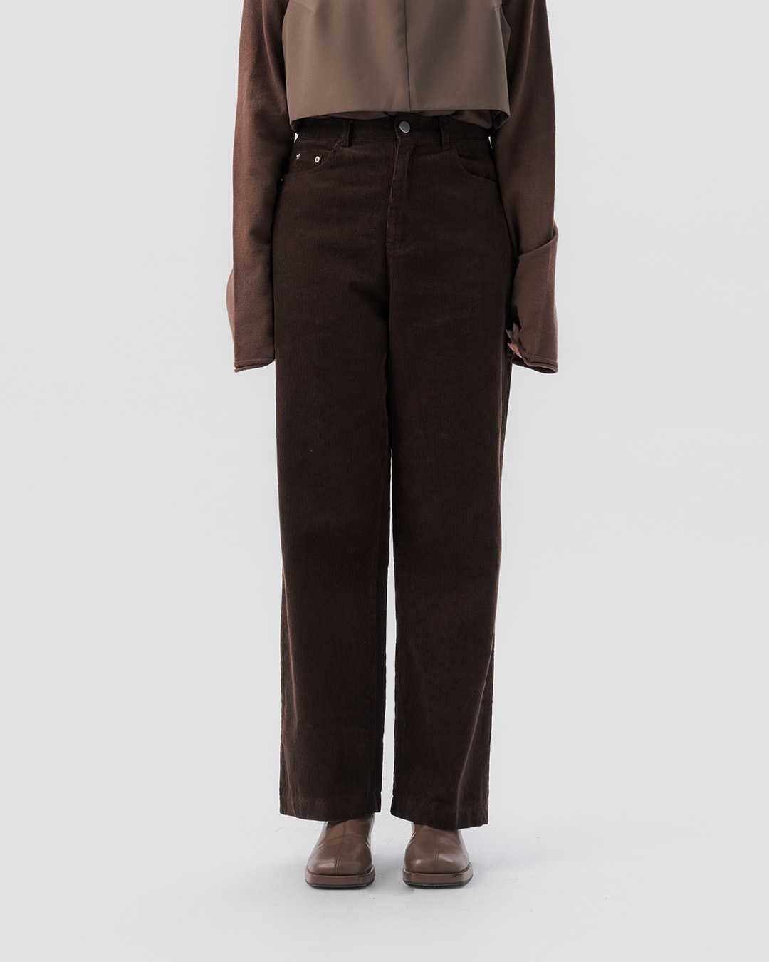 質感素面燈芯絨長褲-咖啡 S/M/L