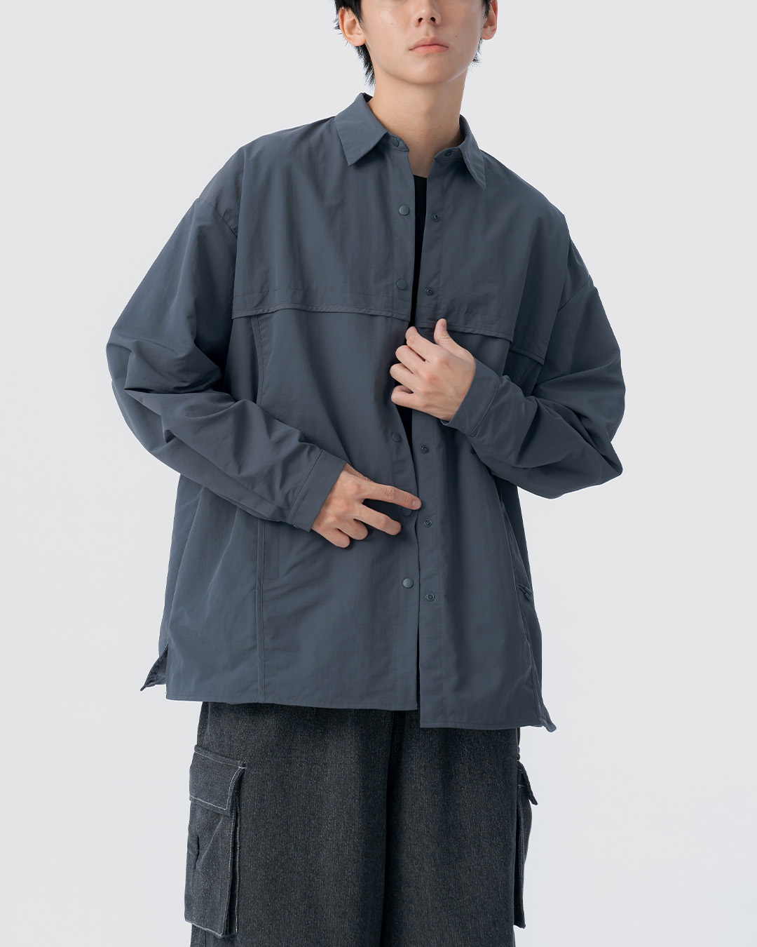剪接口袋設計寬版襯衫 兩色售 1/2
