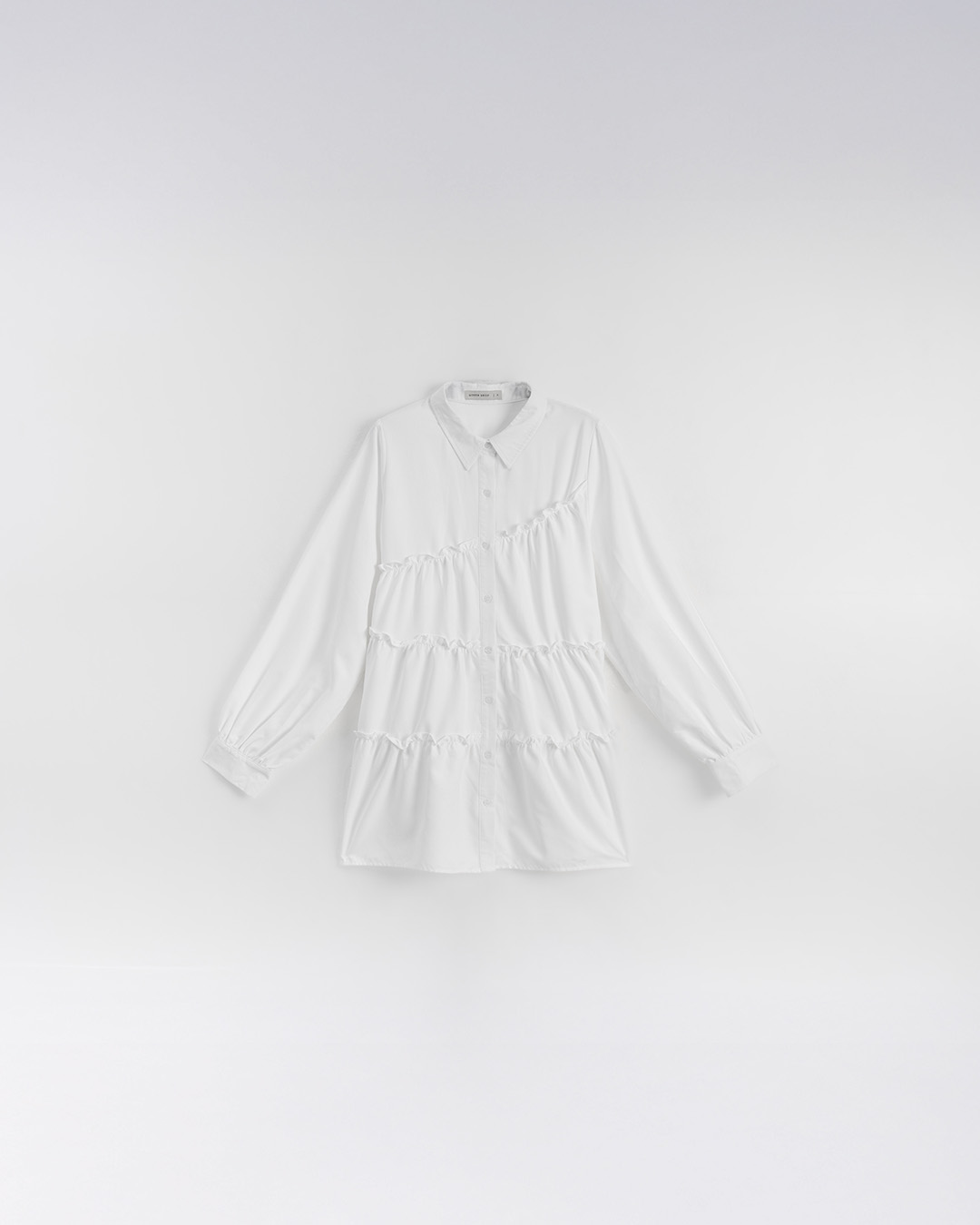 不對稱荷葉剪接襯衫短洋裝 兩色售