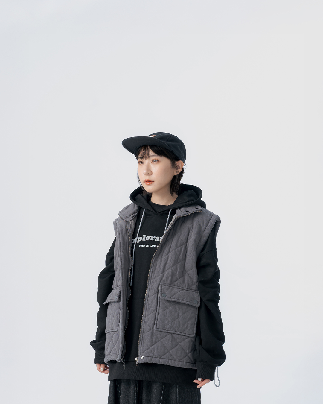 菱格衍縫抽繩鋪棉背心 1/2