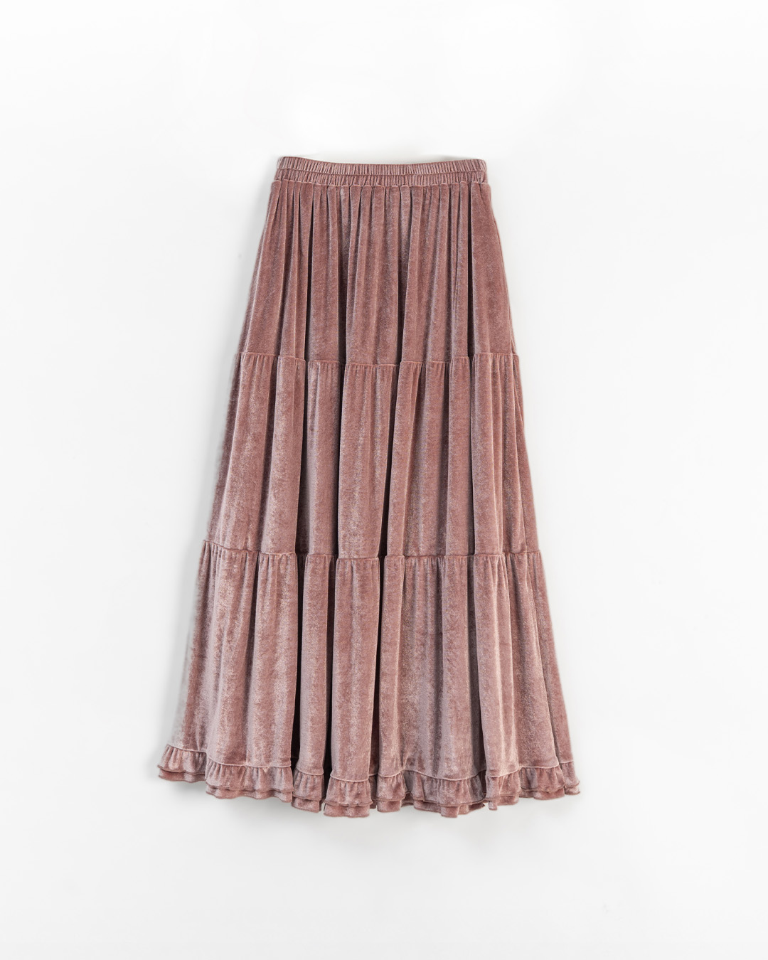 質感光澤絨面荷葉蛋糕長裙 三色售