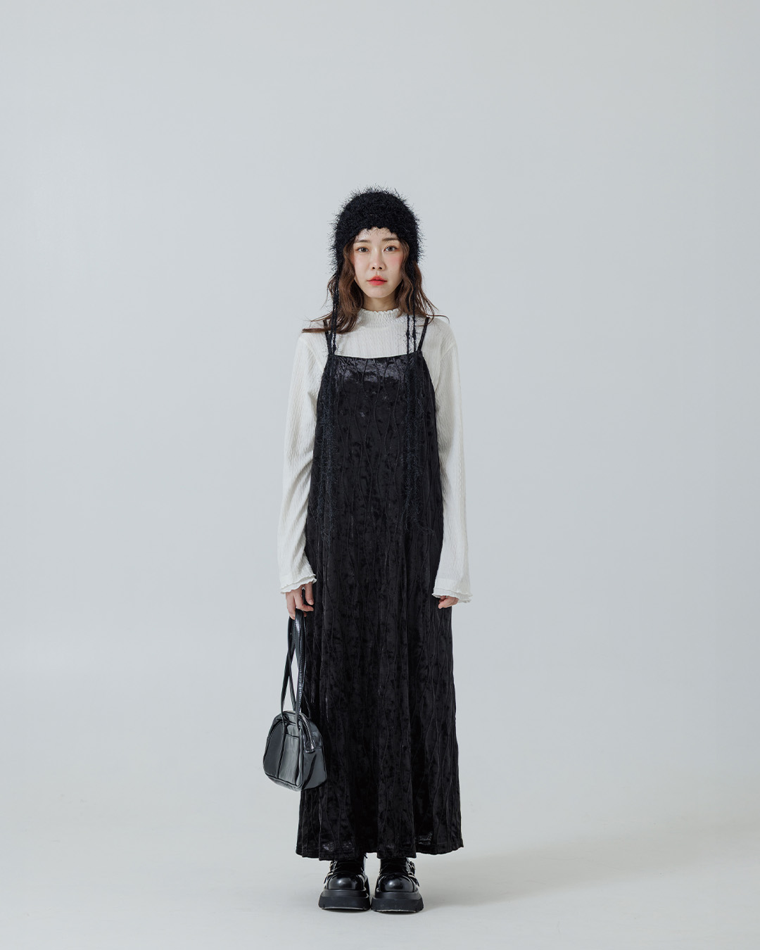 質感立體絨毛紋理細肩長洋裝 兩色售