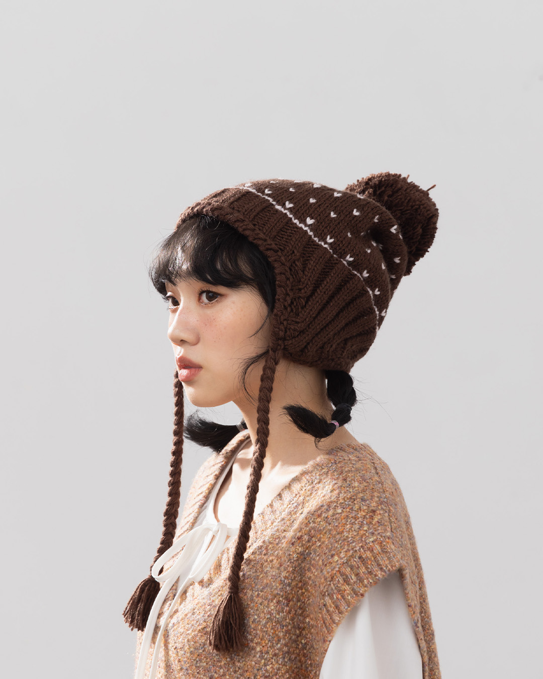 小愛心毛球內加絨針織毛帽 兩色售