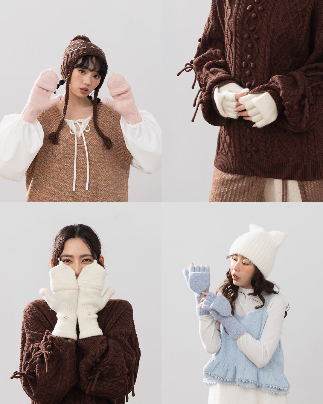 花紗翻蓋兩用針織手套 三色售