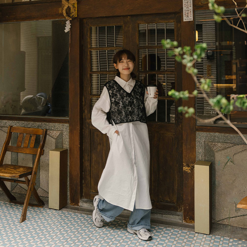 皺皺荷葉造型襯衫短洋裝 兩色售