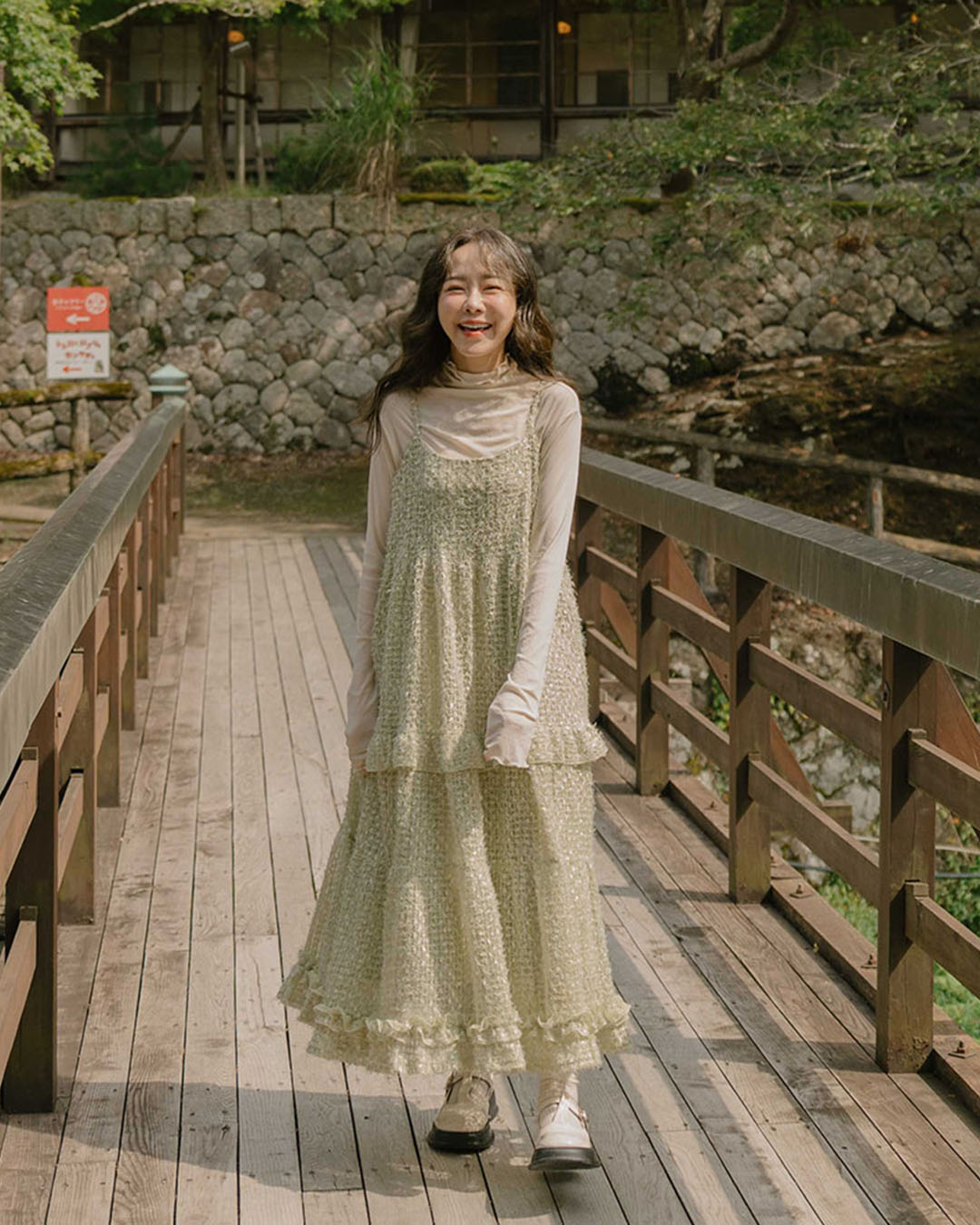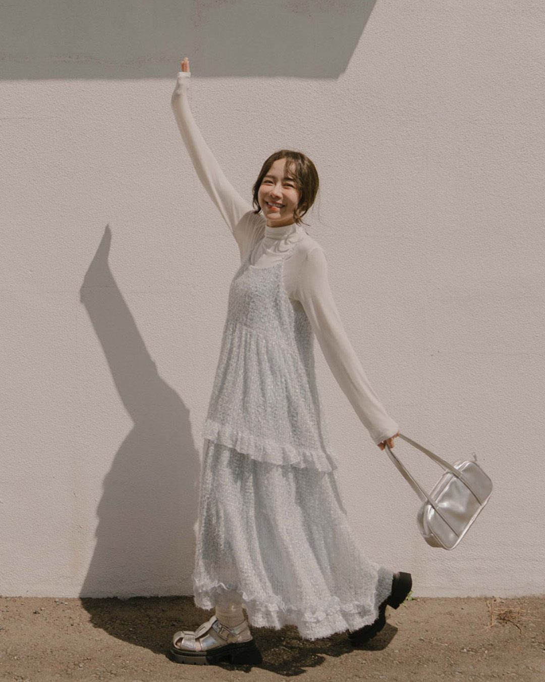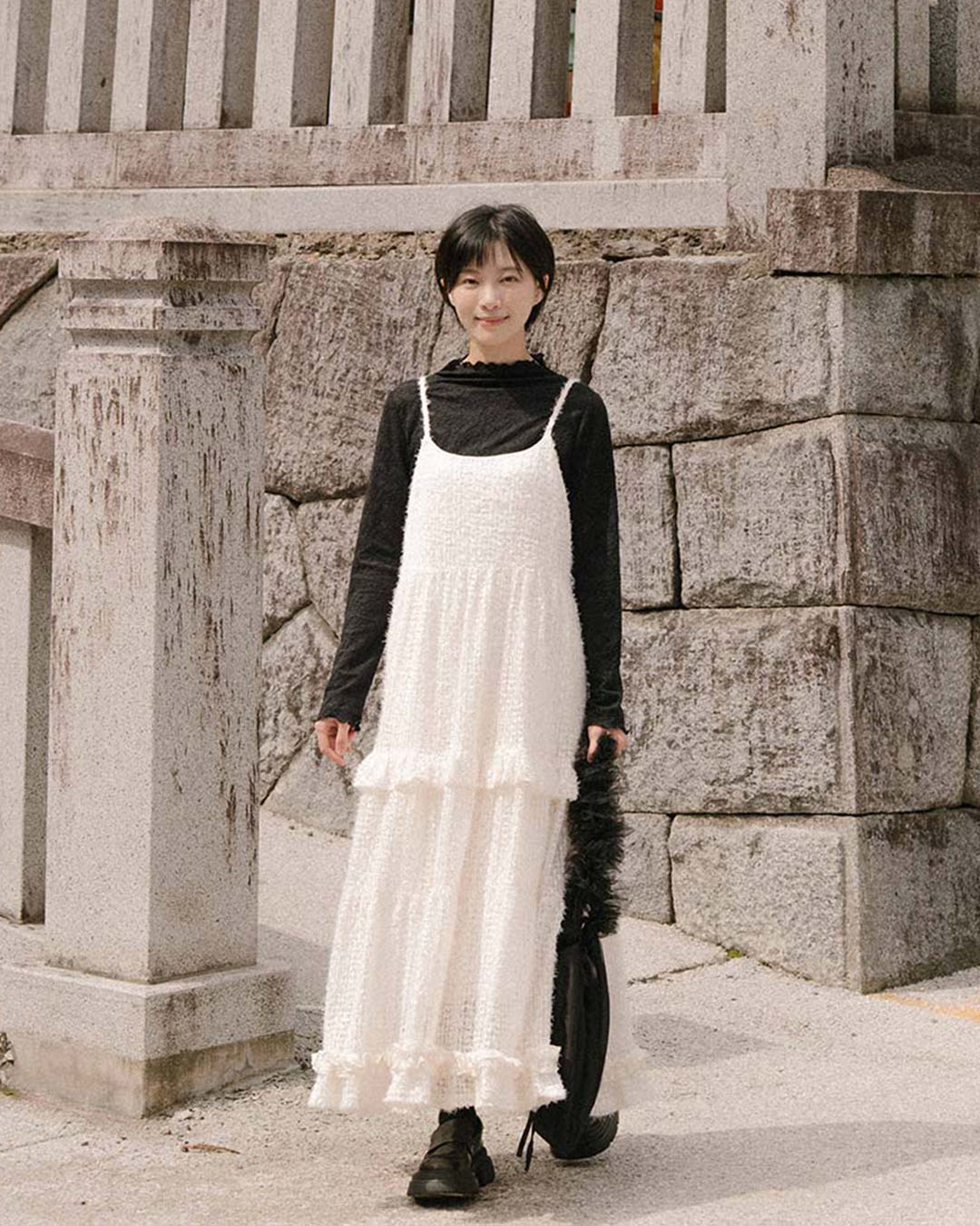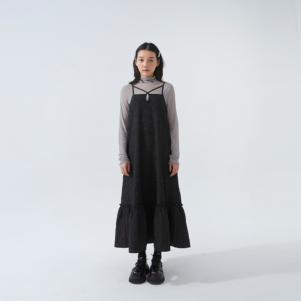 兩面穿立體緹花細肩綁帶長洋裝 兩色售