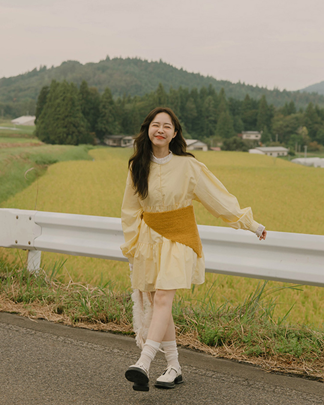 直紋荷葉蛋糕傘擺短洋裝 兩色售
