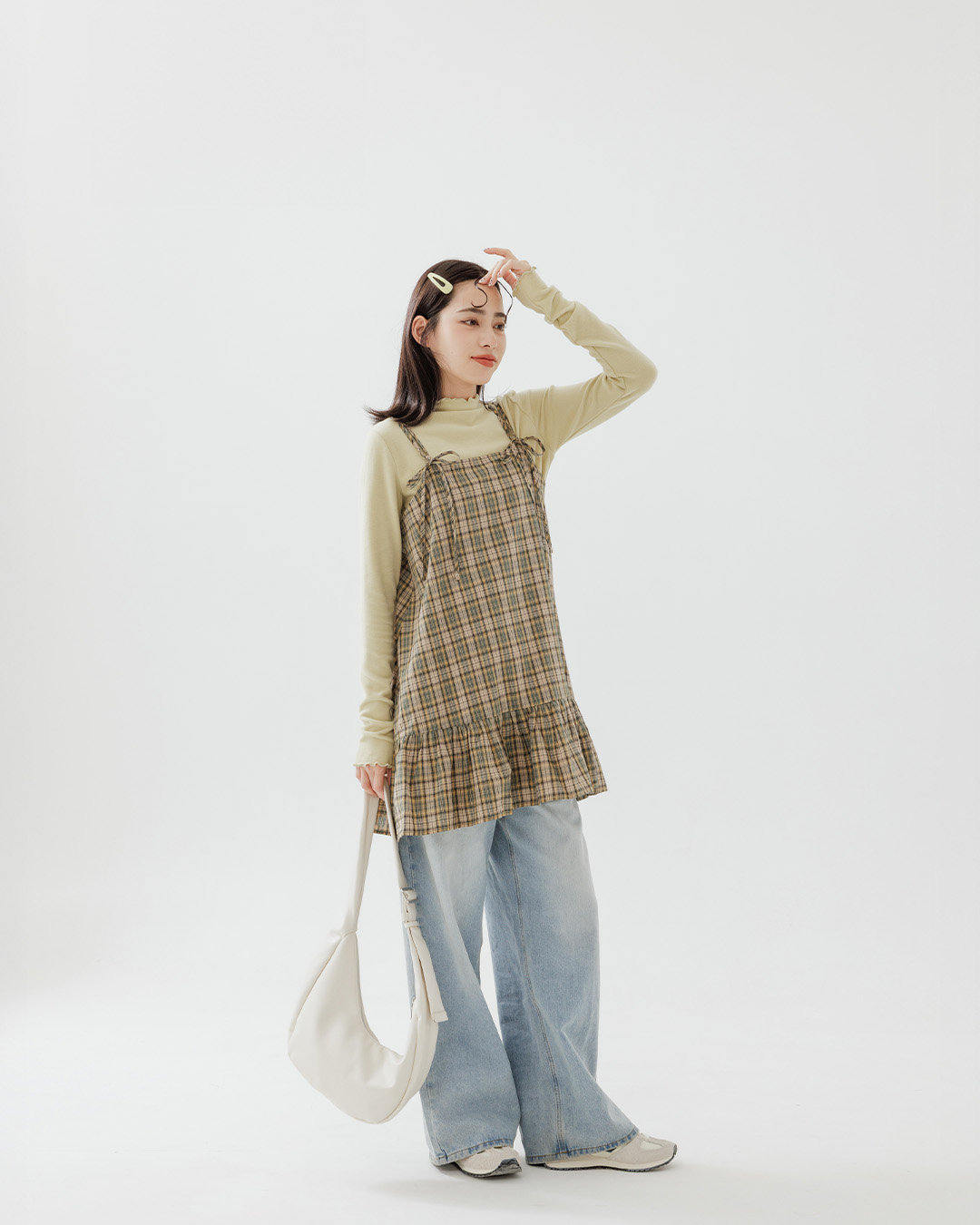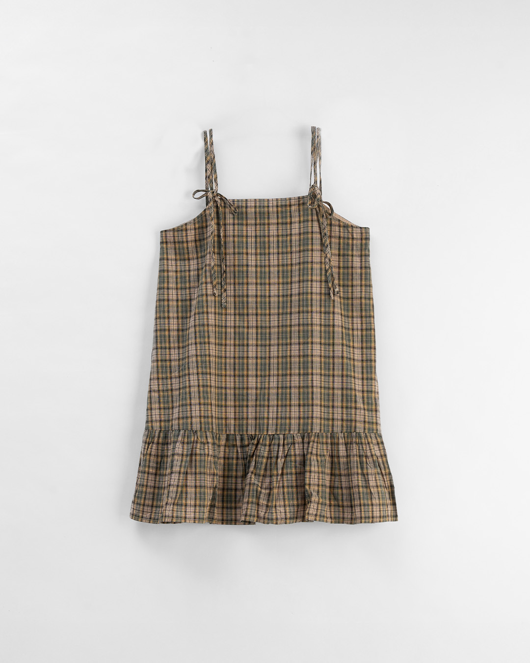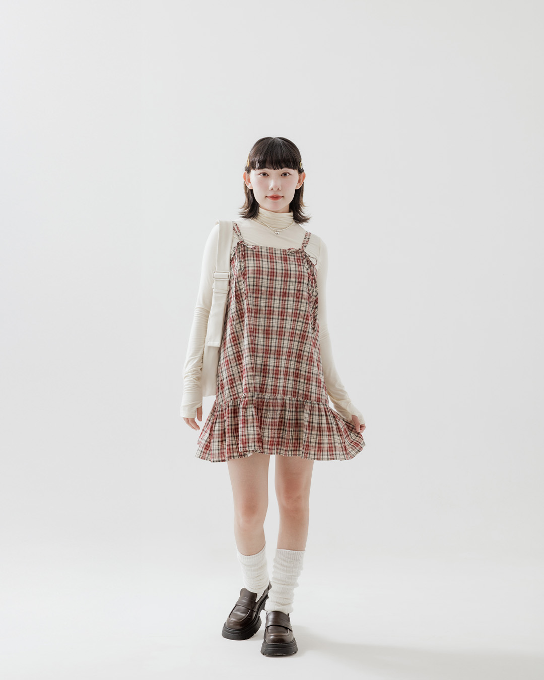 格紋荷葉領細肩蛋糕短洋裝 兩色售