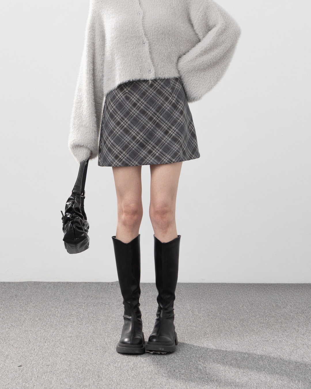 配色格紋設計毛呢短裙 兩色售 S/M