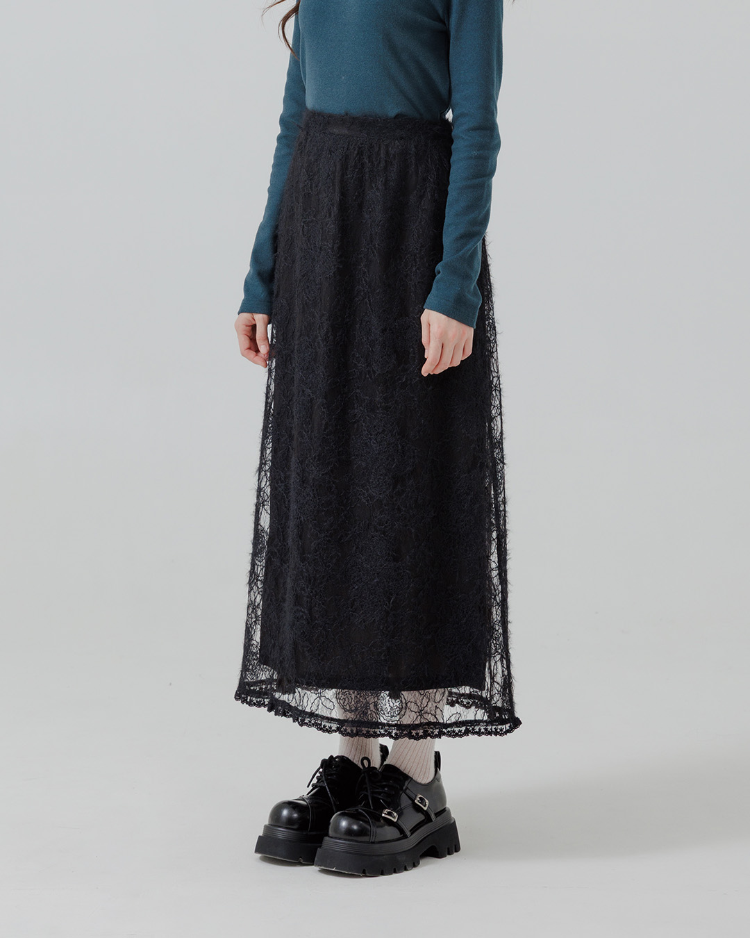 蜜桃絨蕾絲內磨毛蛋糕長裙 兩色售