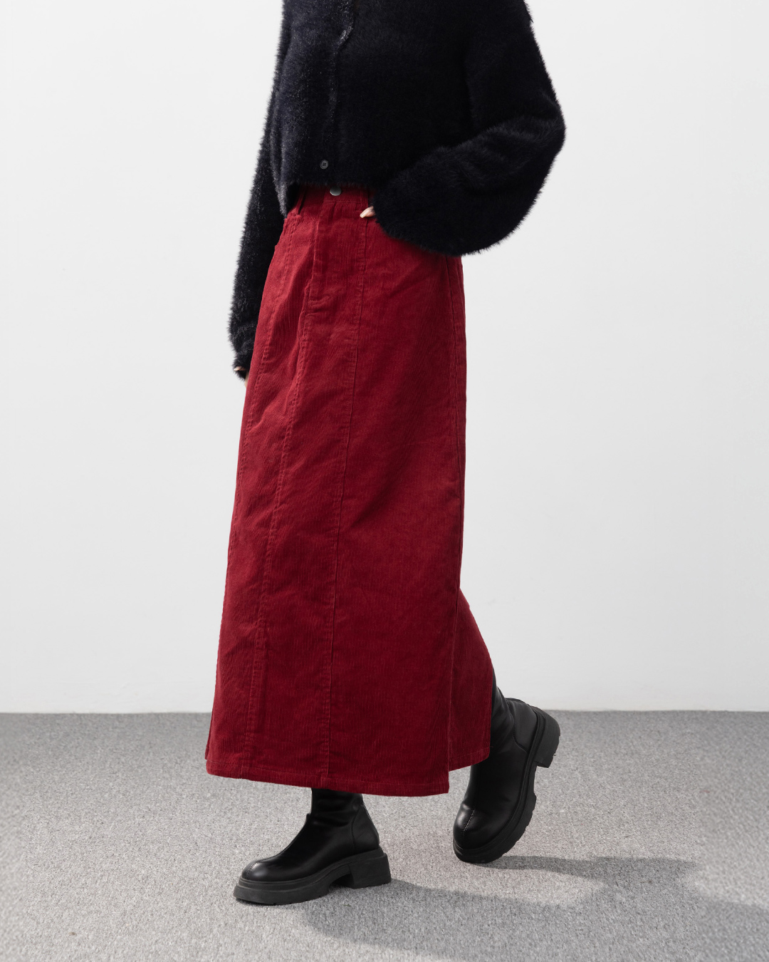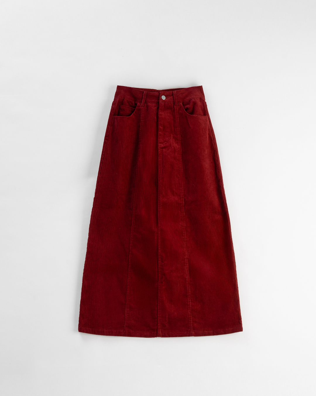 剪接設計直筒燈芯絨長裙-紅 S/M/L