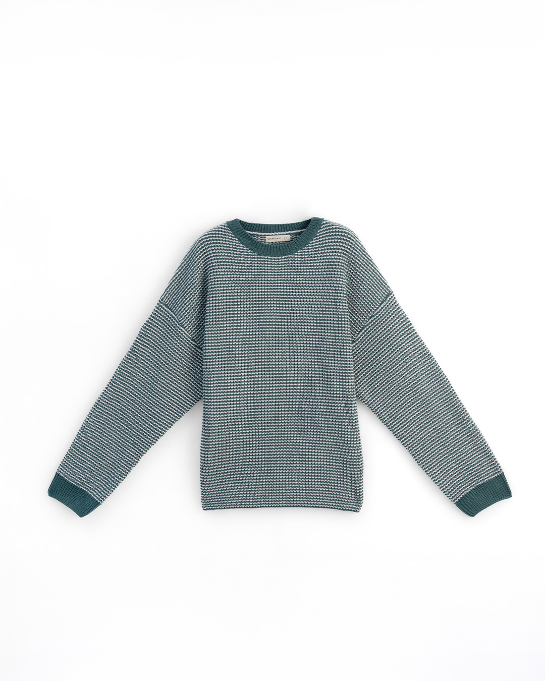 配色細格圓領寬版針織毛衣 三色售