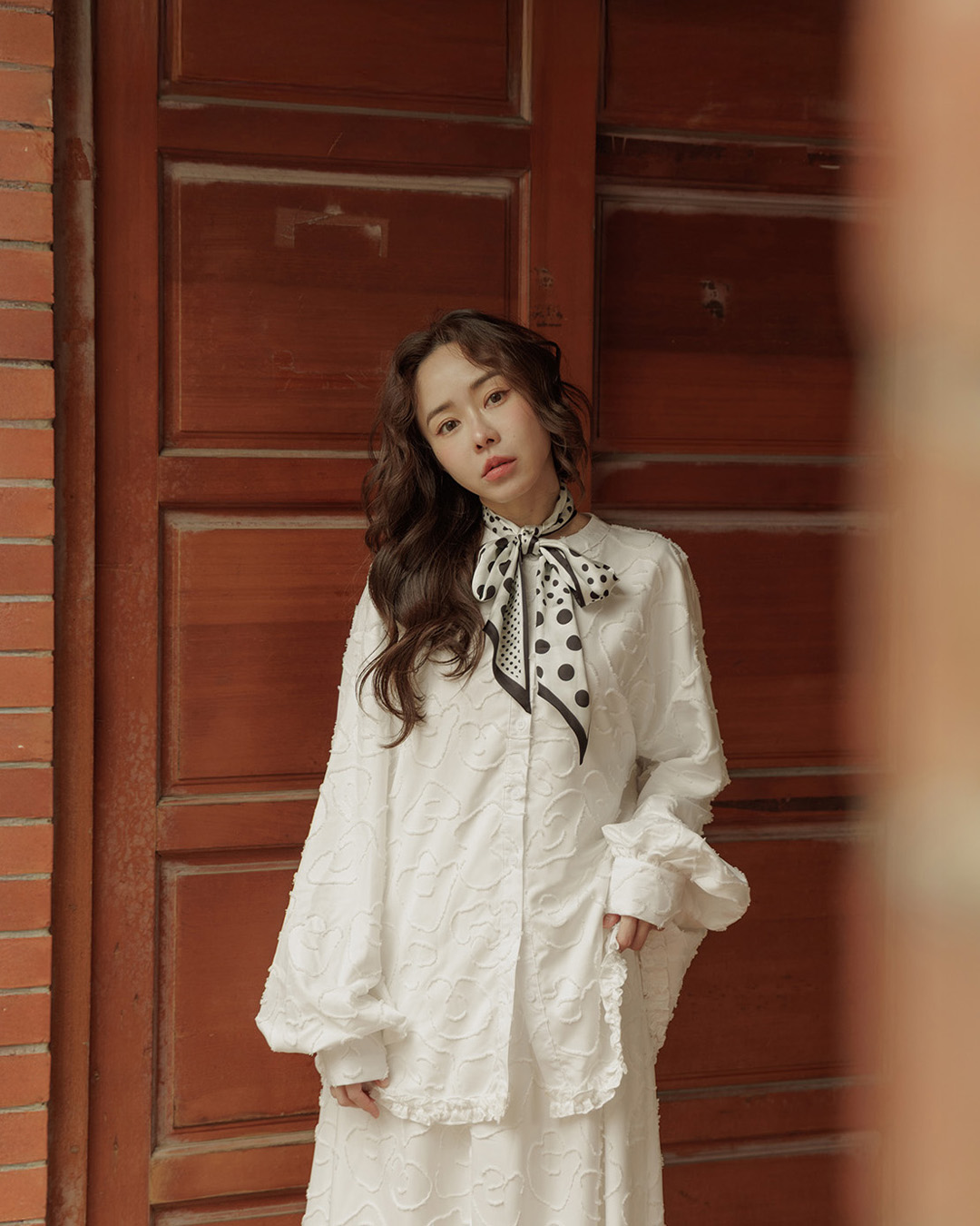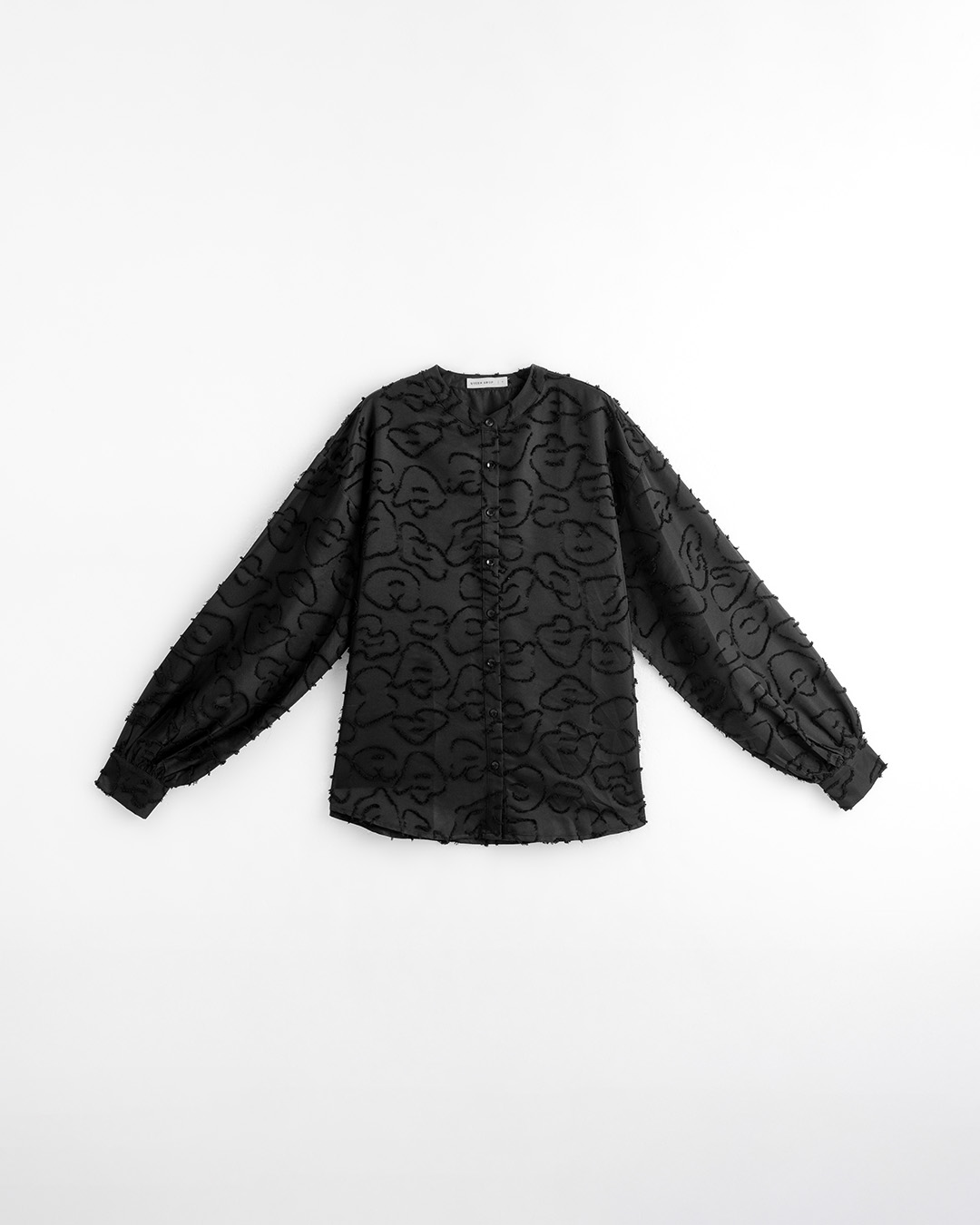 絨毛花朵緹花中山領寬版襯衫 兩色售