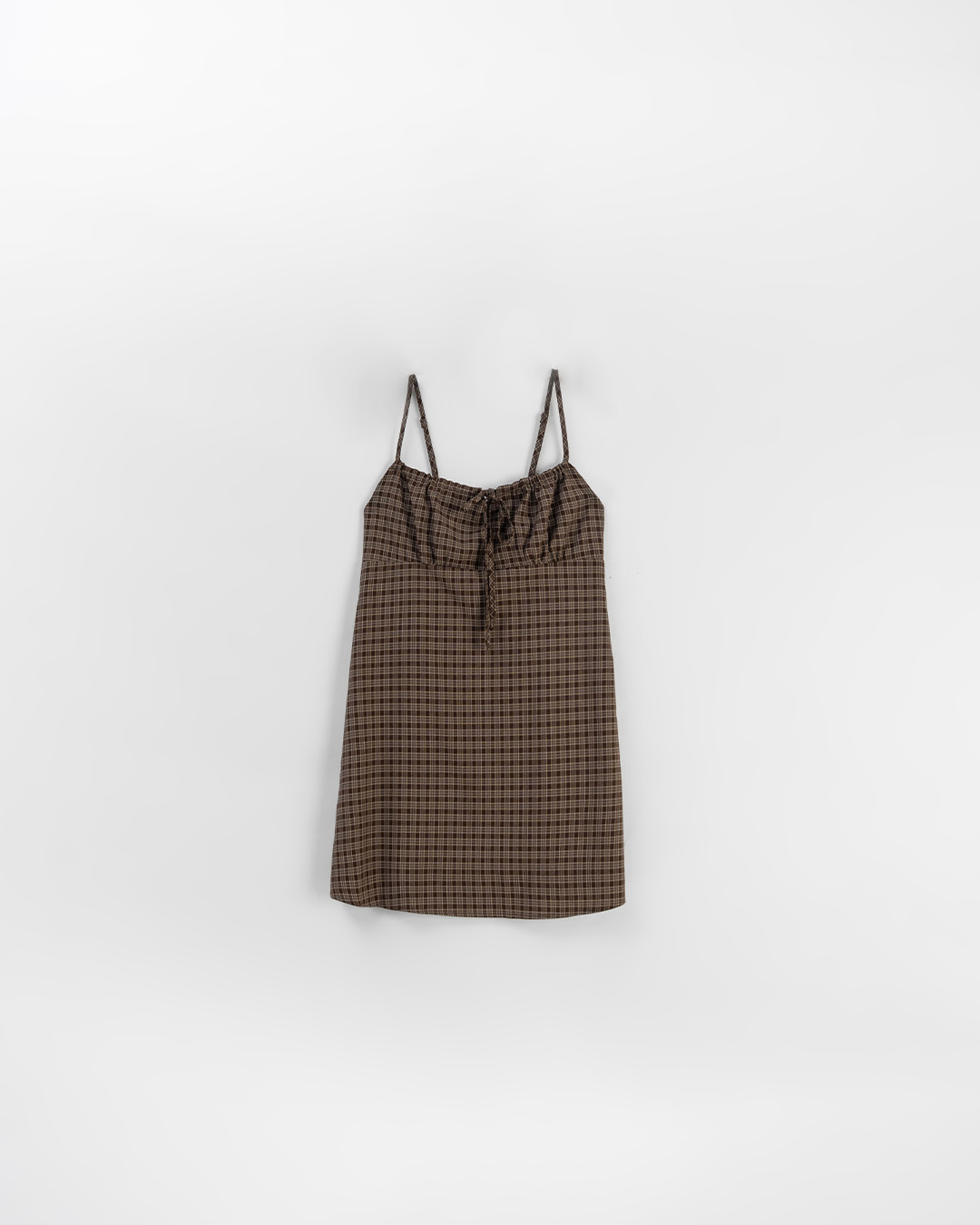 格紋蝴蝶結綁帶設計細肩短洋裝 兩色售S/M