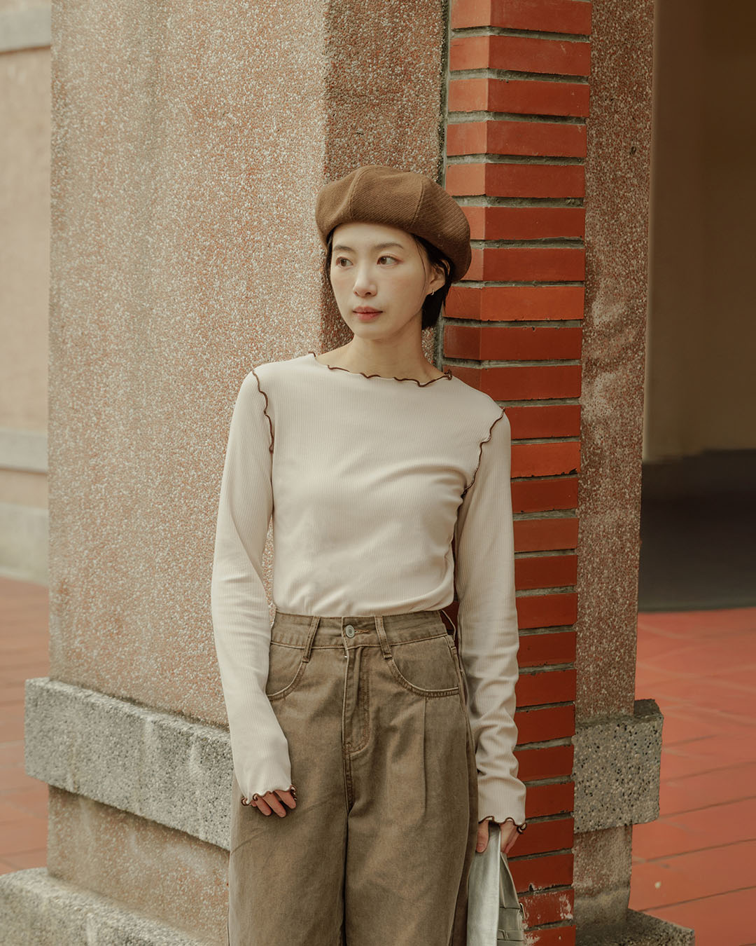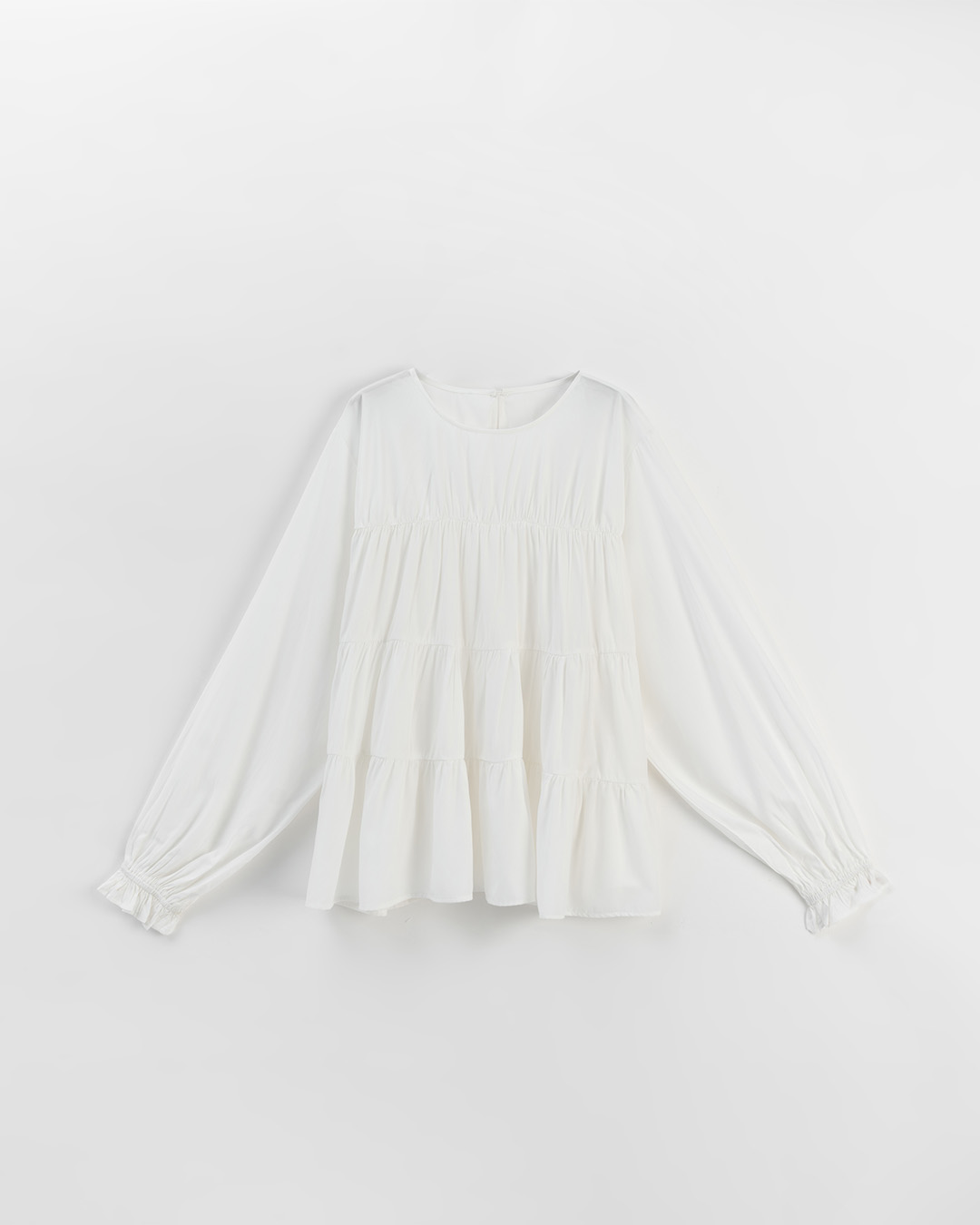 質感蛋糕剪接傘襬圓領上衣 兩色售