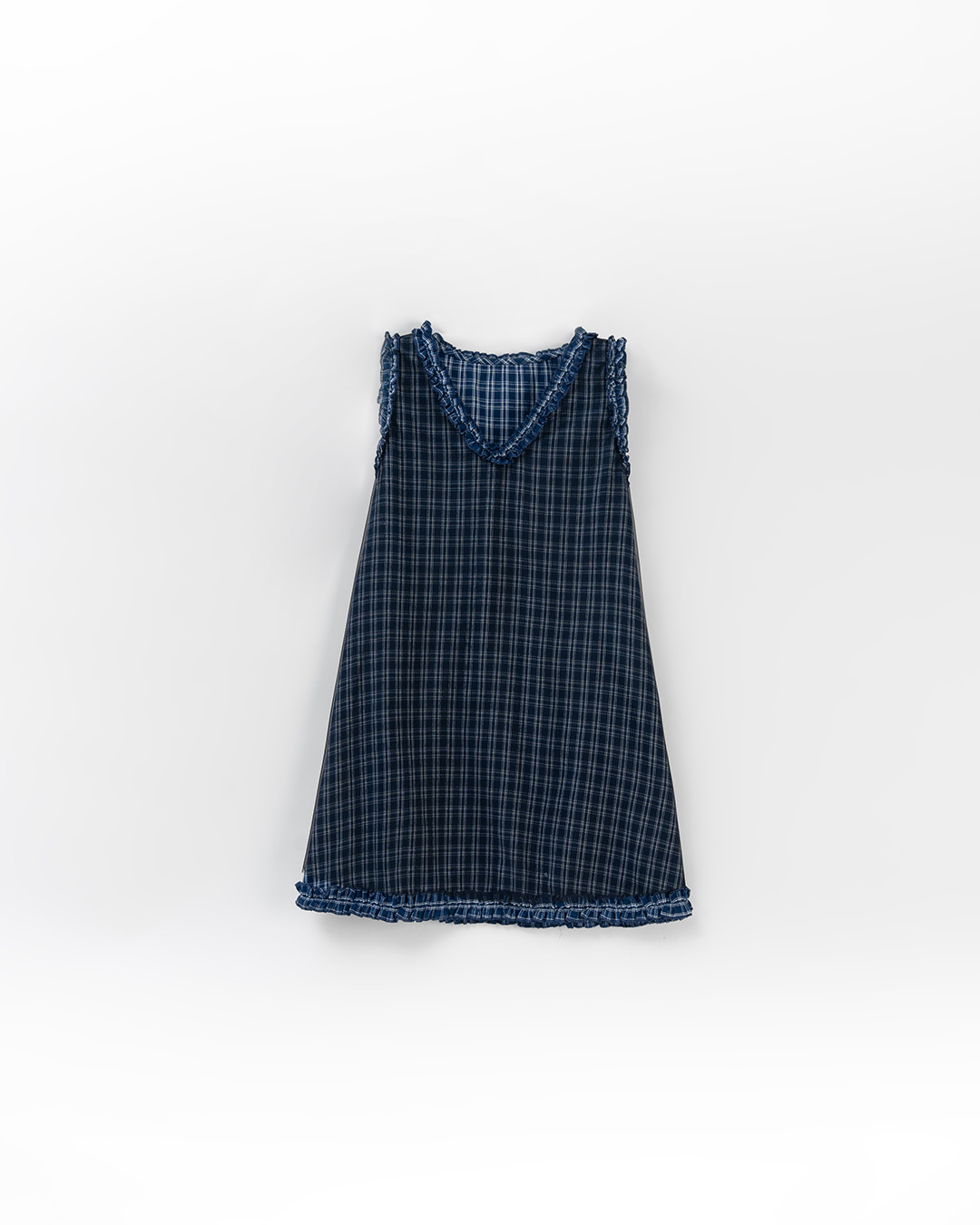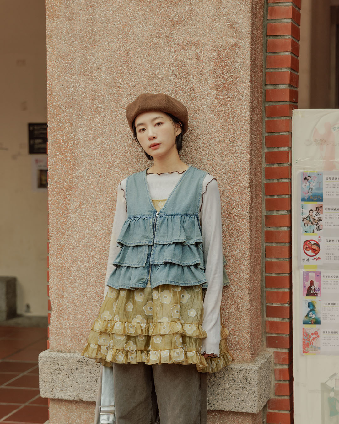 雙層格紋透紗荷葉造型背心洋裝 兩色售