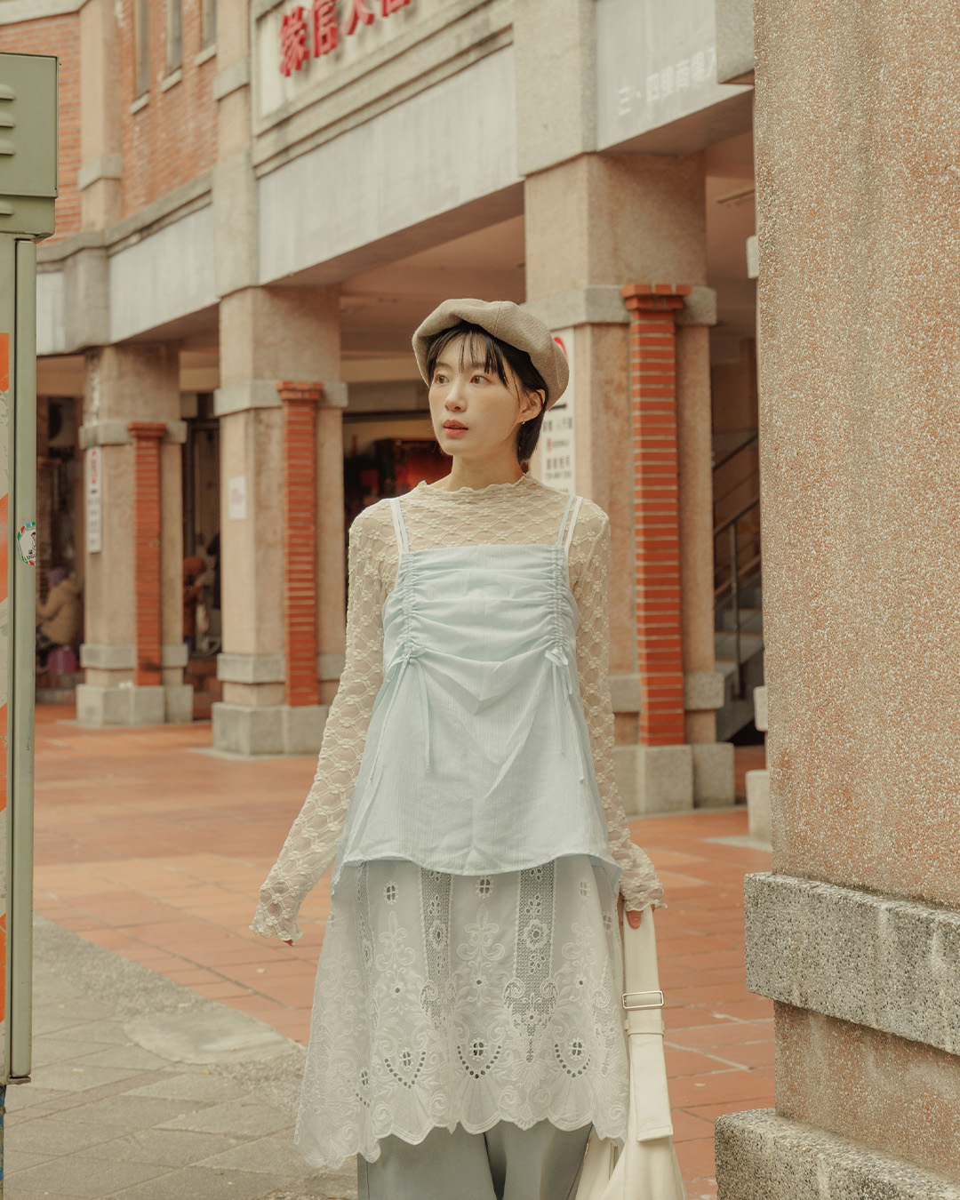 雙抽繩綁帶設計細肩罩衫背心 三色售