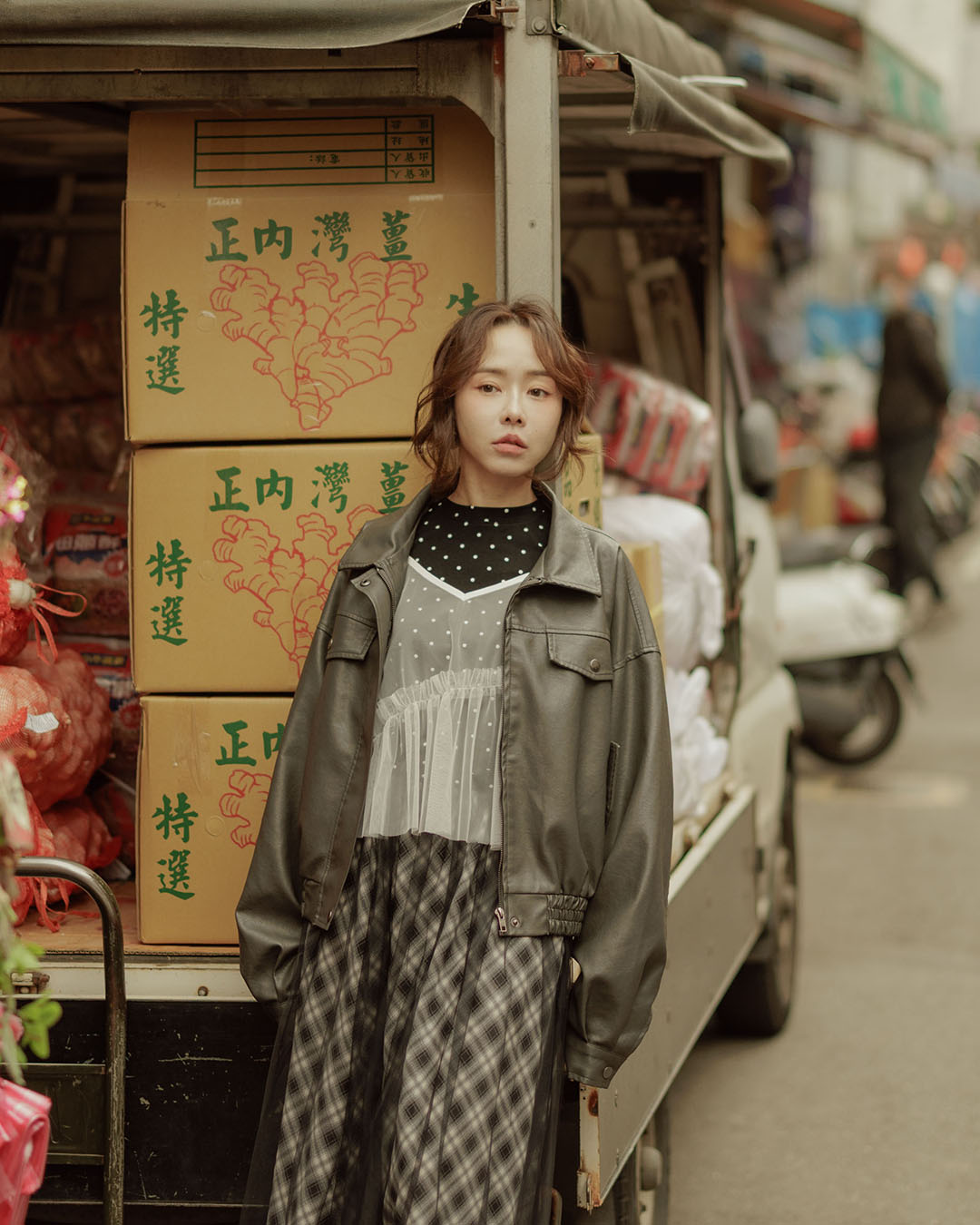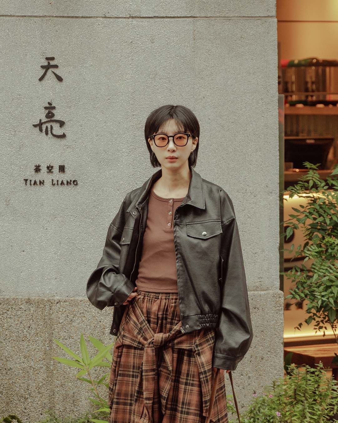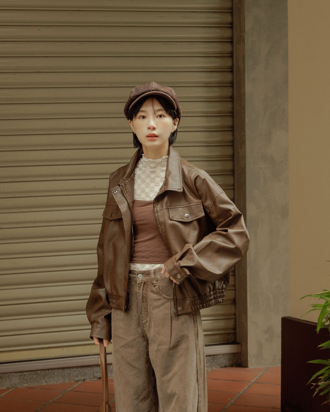 翻蓋口袋造型短版皮革夾克外套-咖啡