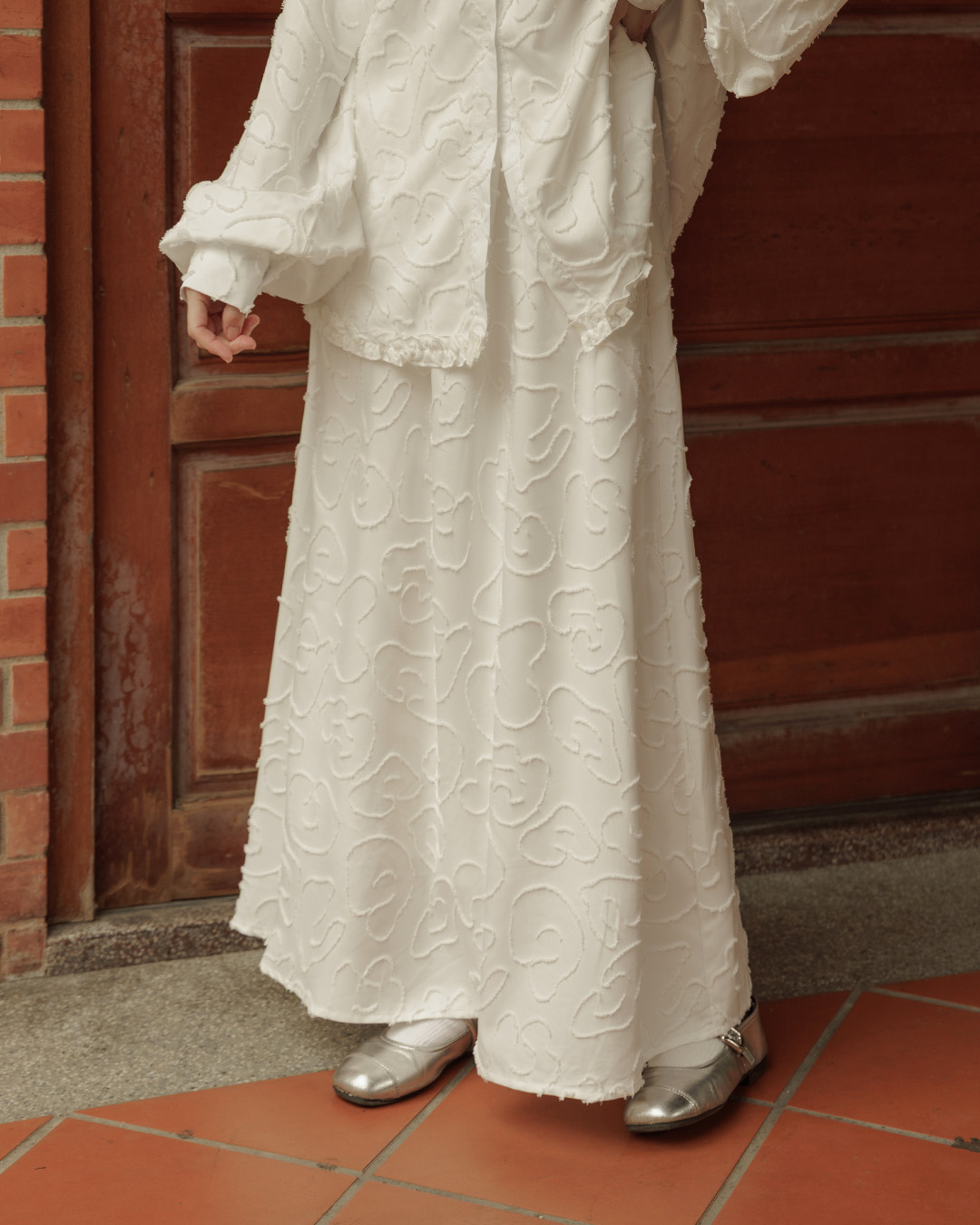絨毛花朵緹花傘擺長裙 兩色售 S/M