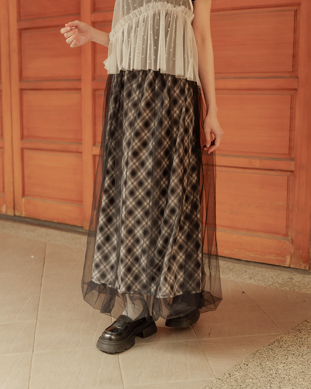 格紋透膚網紗兩件式附襯裙罩衫背心三色售