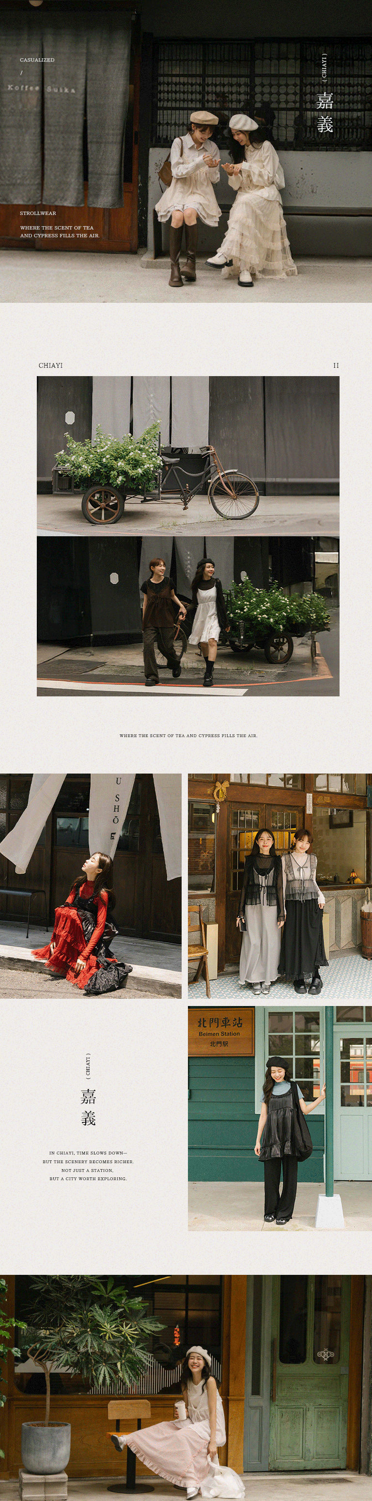 澎袖造型網紗兩件式長洋裝 兩色售 S/M