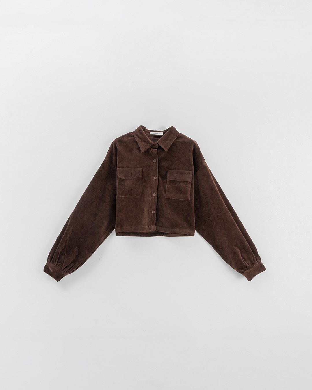 燈芯絨雙口袋短版長袖襯衫 兩色售
