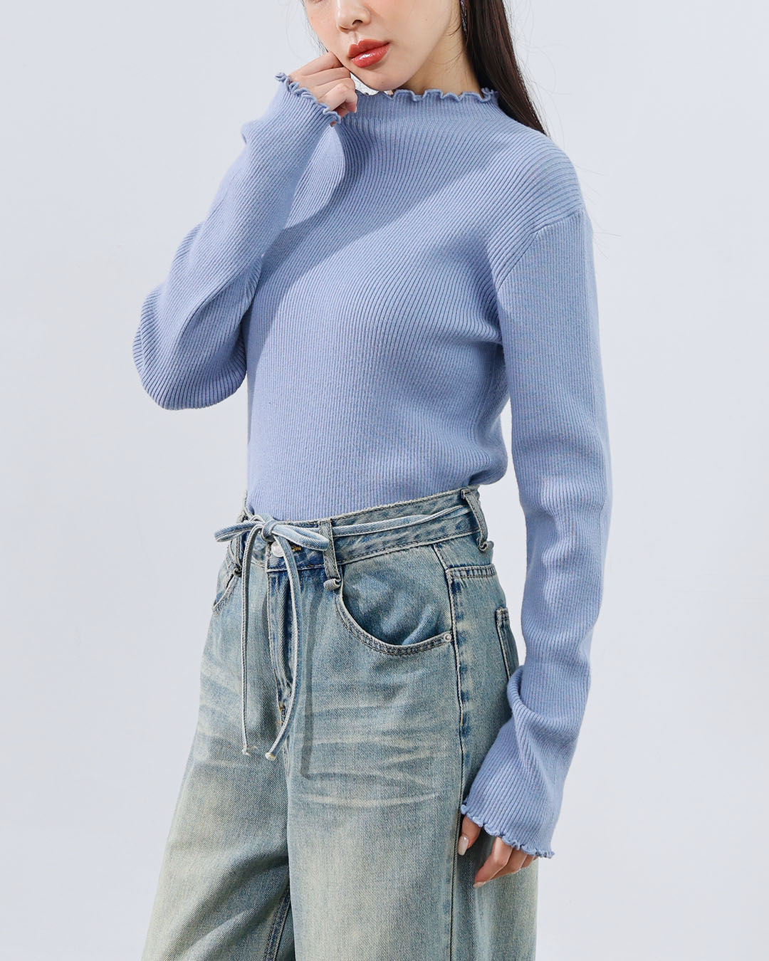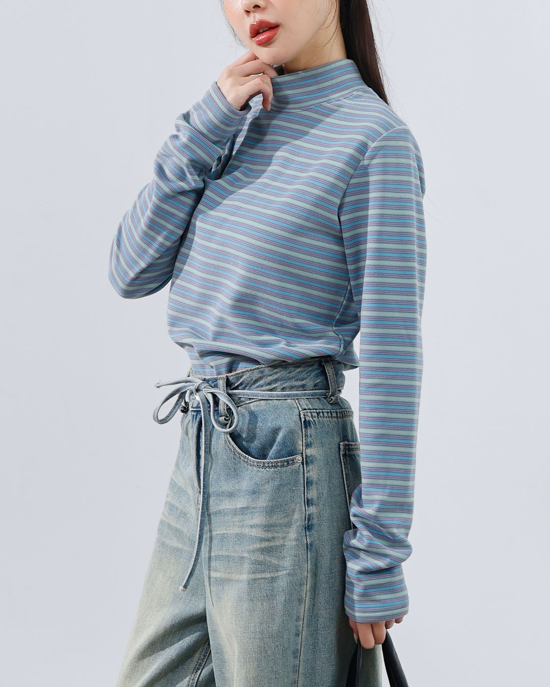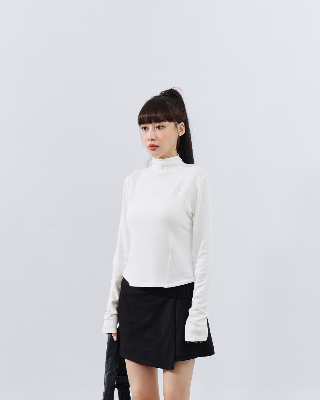 素面酒瓶領合身長袖上衣 六色售 S/M/L