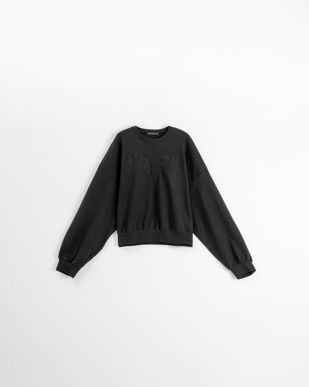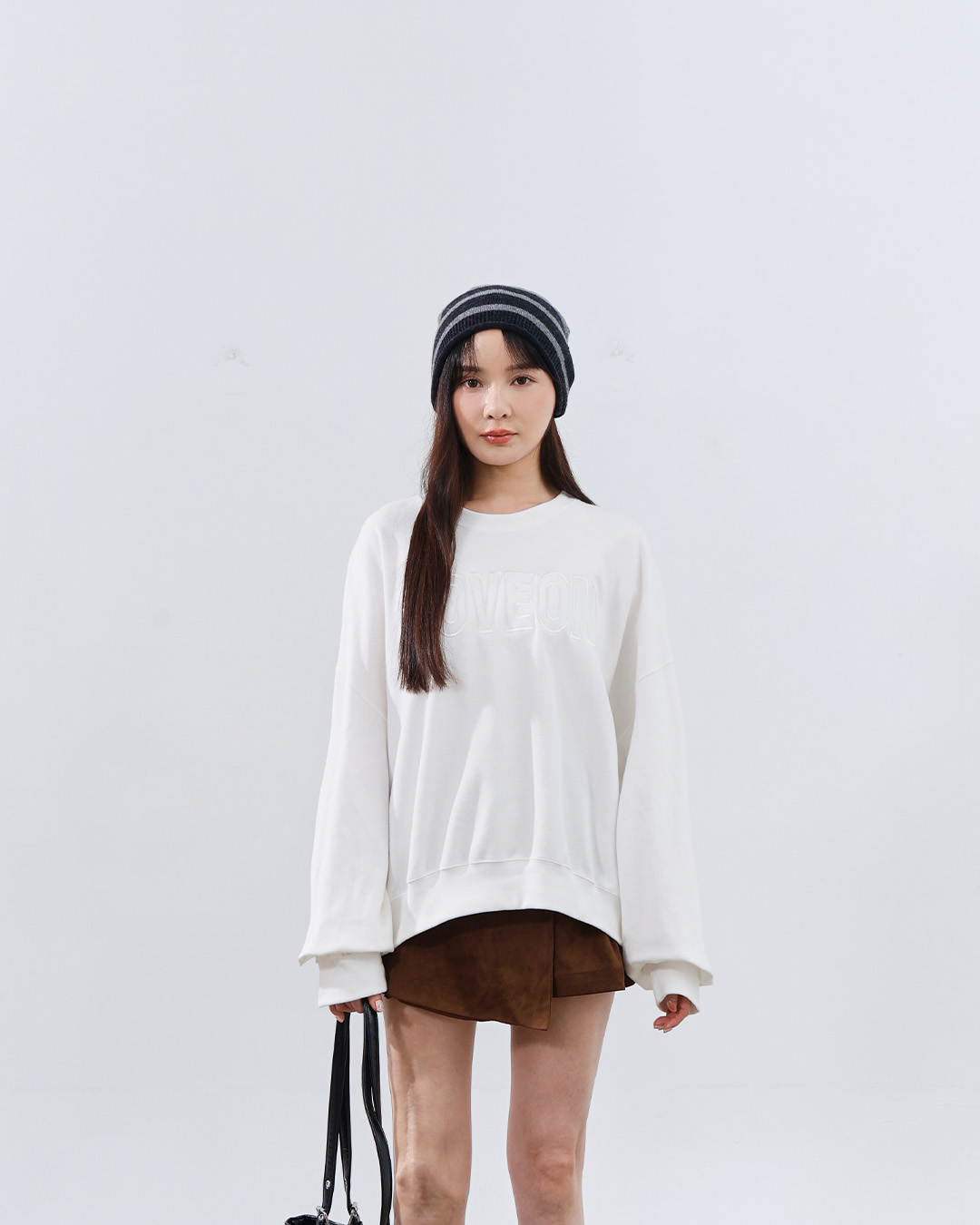 英文刺繡休閒寬版長袖衛衣 兩色售