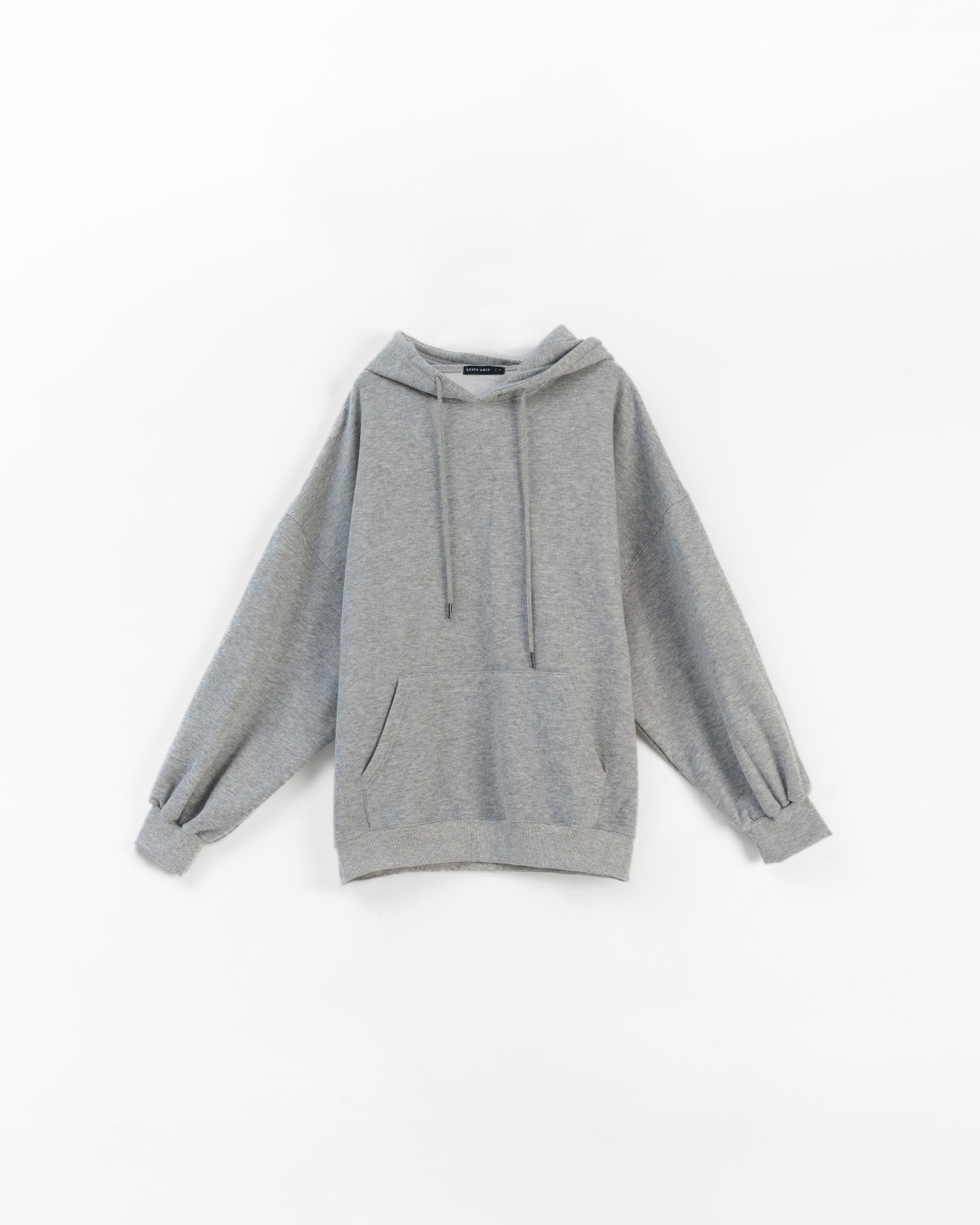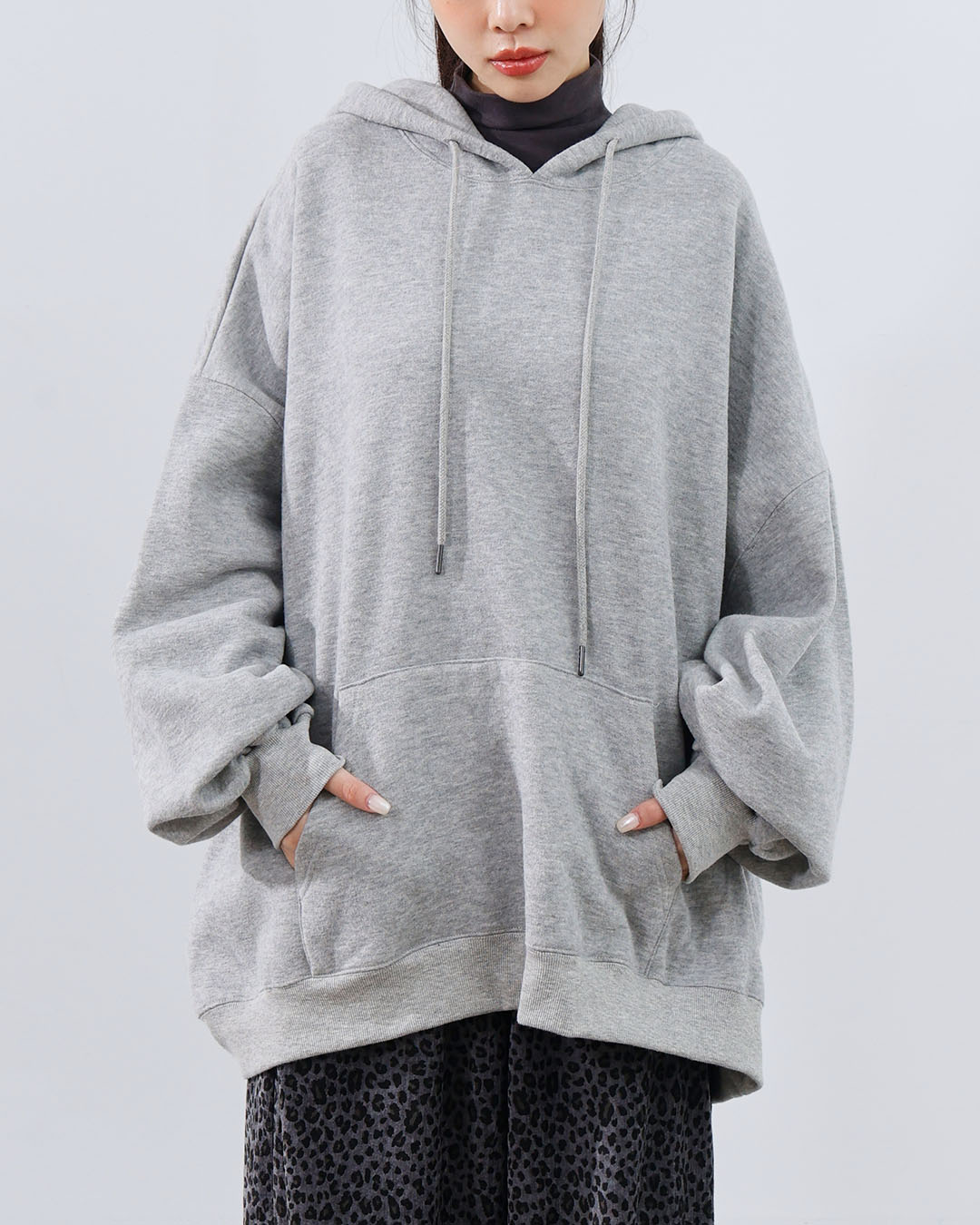 MIT 素面口袋造型刷毛連帽衛衣-花灰