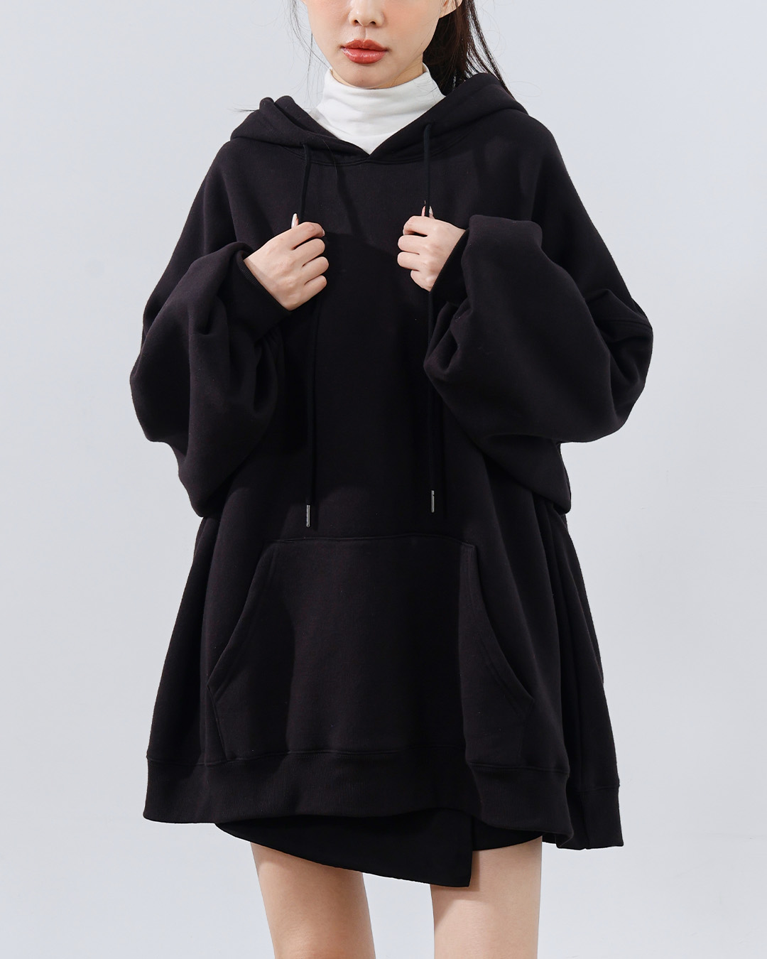 MIT 素面口袋造型刷毛連帽衛衣-黑