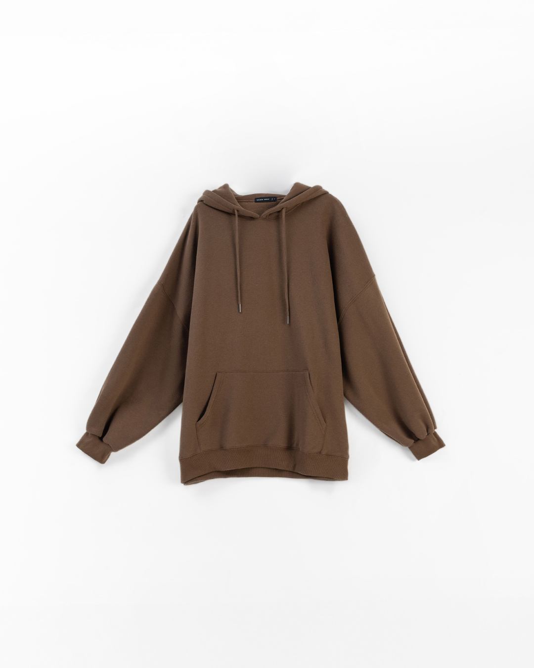 MIT 素面口袋造型刷毛連帽衛衣-咖