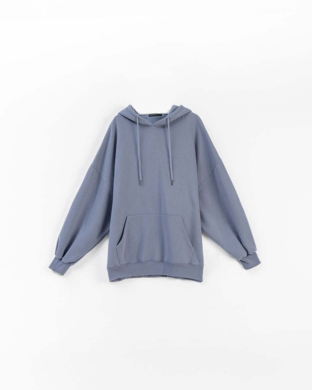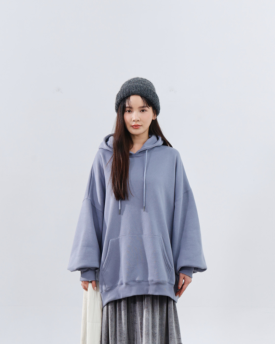 MIT 素面口袋造型刷毛連帽衛衣-灰藍
