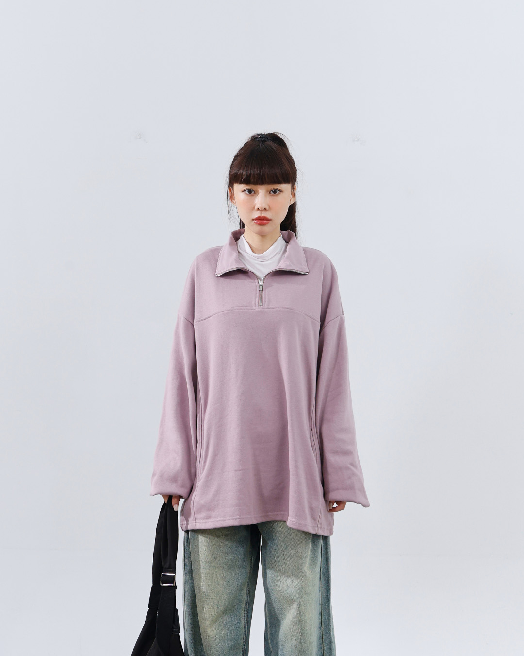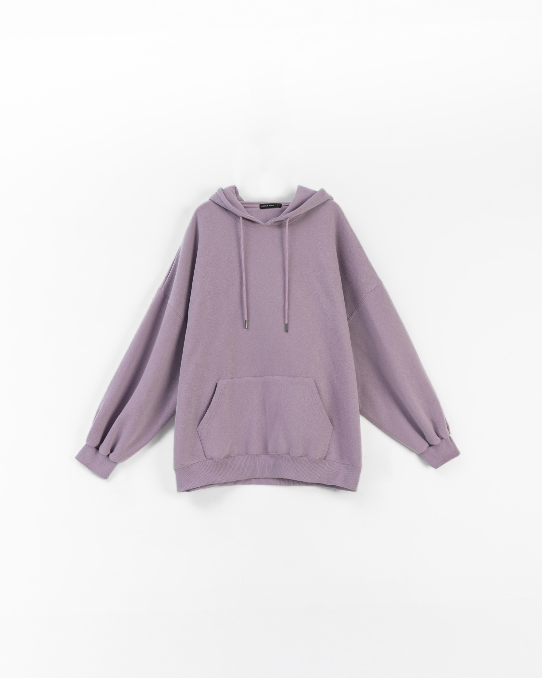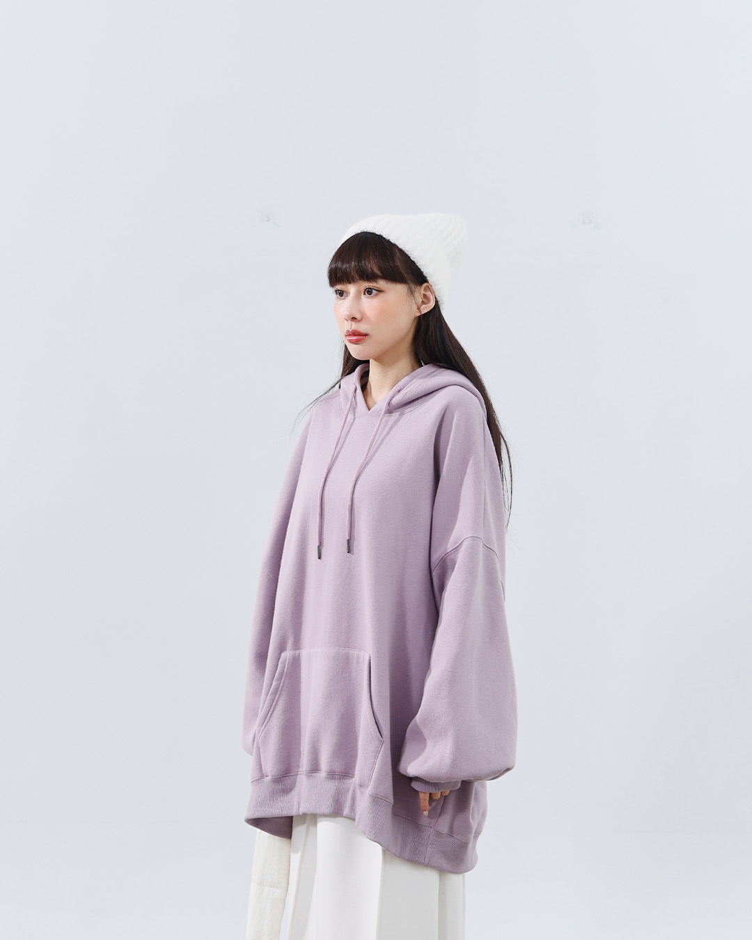 MIT 素面口袋造型刷毛連帽衛衣--紫