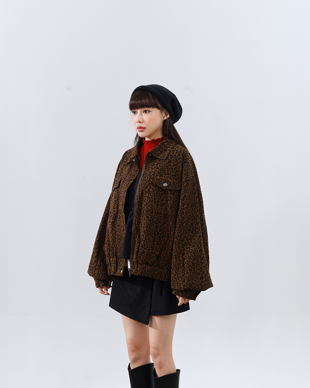 豹紋光澤設計絨面長褲 兩色售 S/M