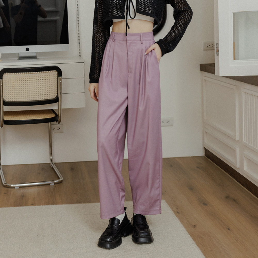 前打褶造型直筒色褲 四色售 S/M/L