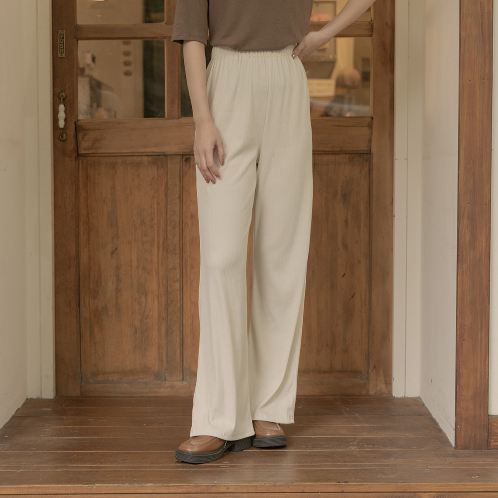 立體直紋坑條木耳邊長褲 六色售