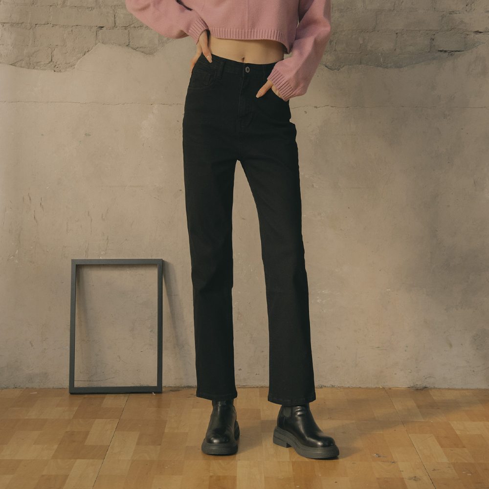 立體紋理直筒軟料長褲-黑 S/M/L
