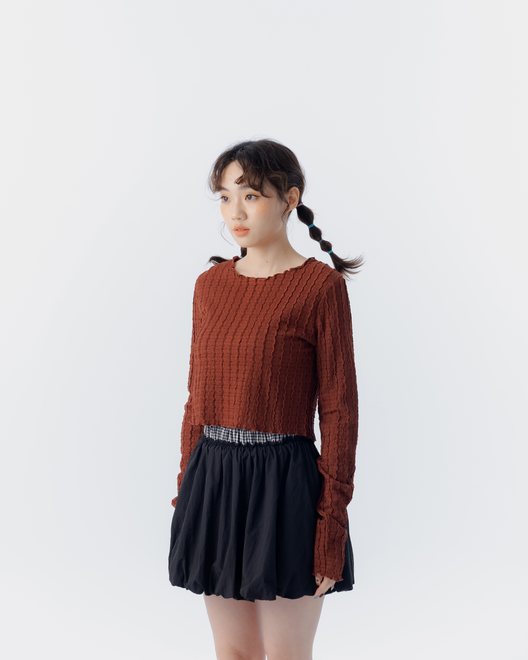 立體波浪紋理短版上衣 三色售