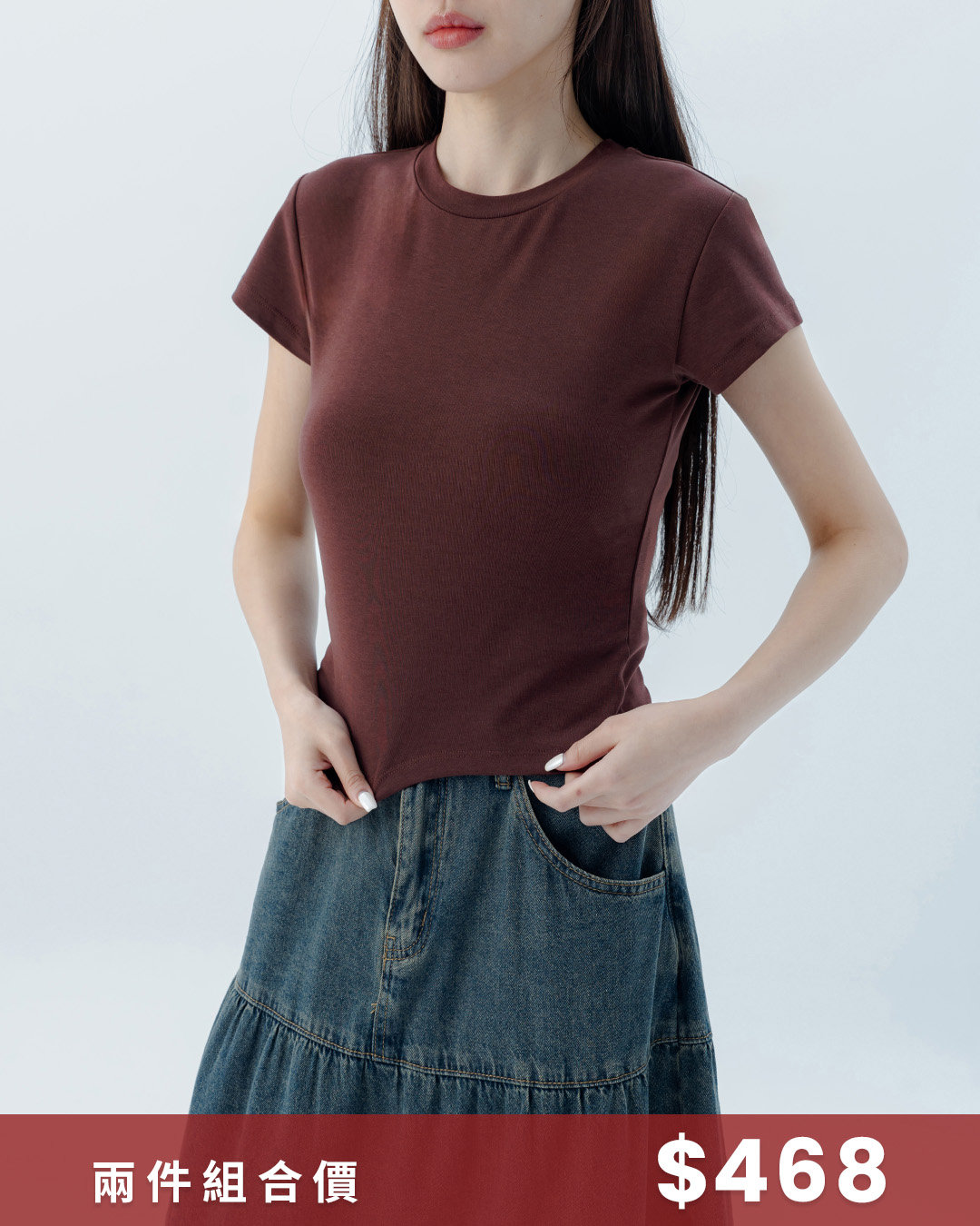 素面圓領彈力合身上衣 四色售 S/M