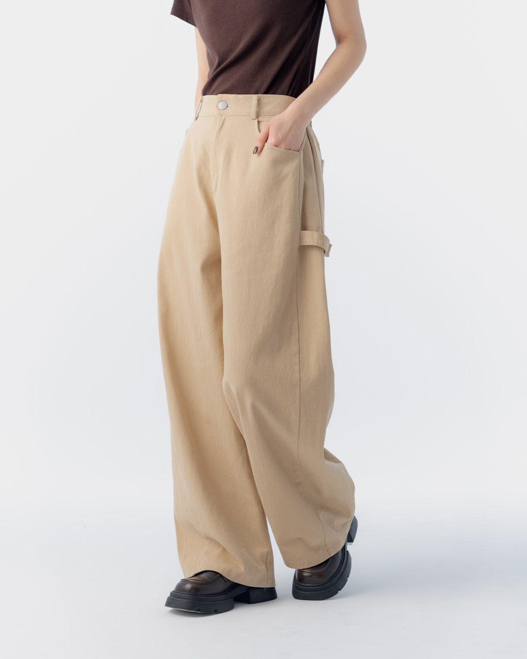 素面側裝飾帶造型斜紋繭型褲 兩色售 S/M