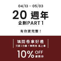 4/13(一)-5/03(日) [ 20週年企劃 Part 1 ── 有你更完整 ]