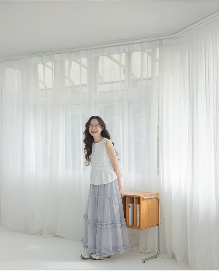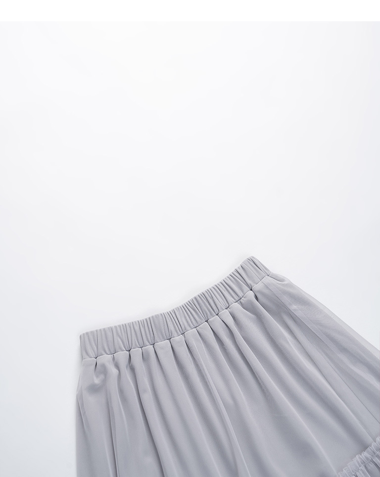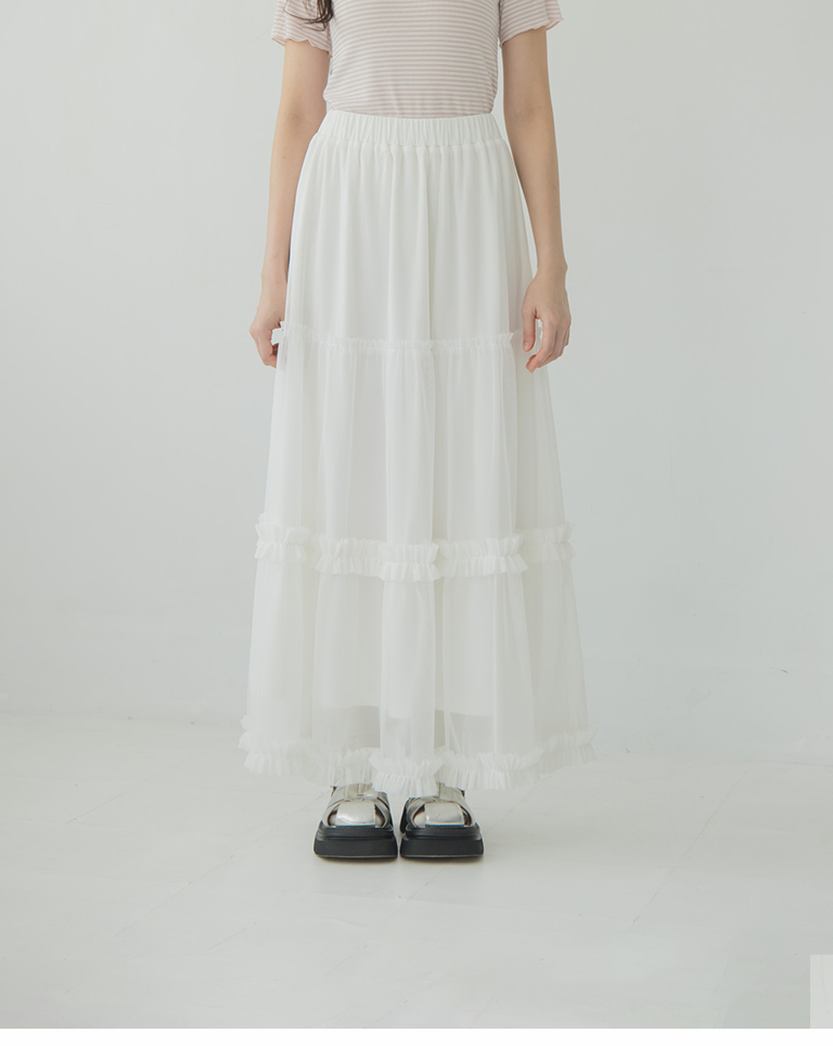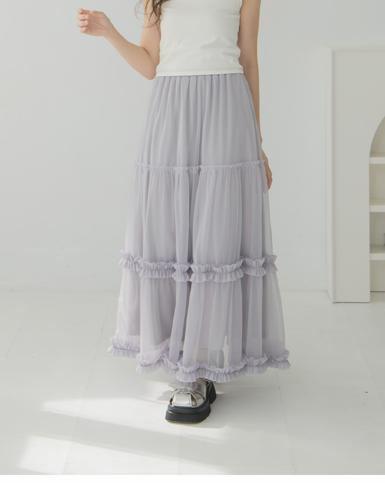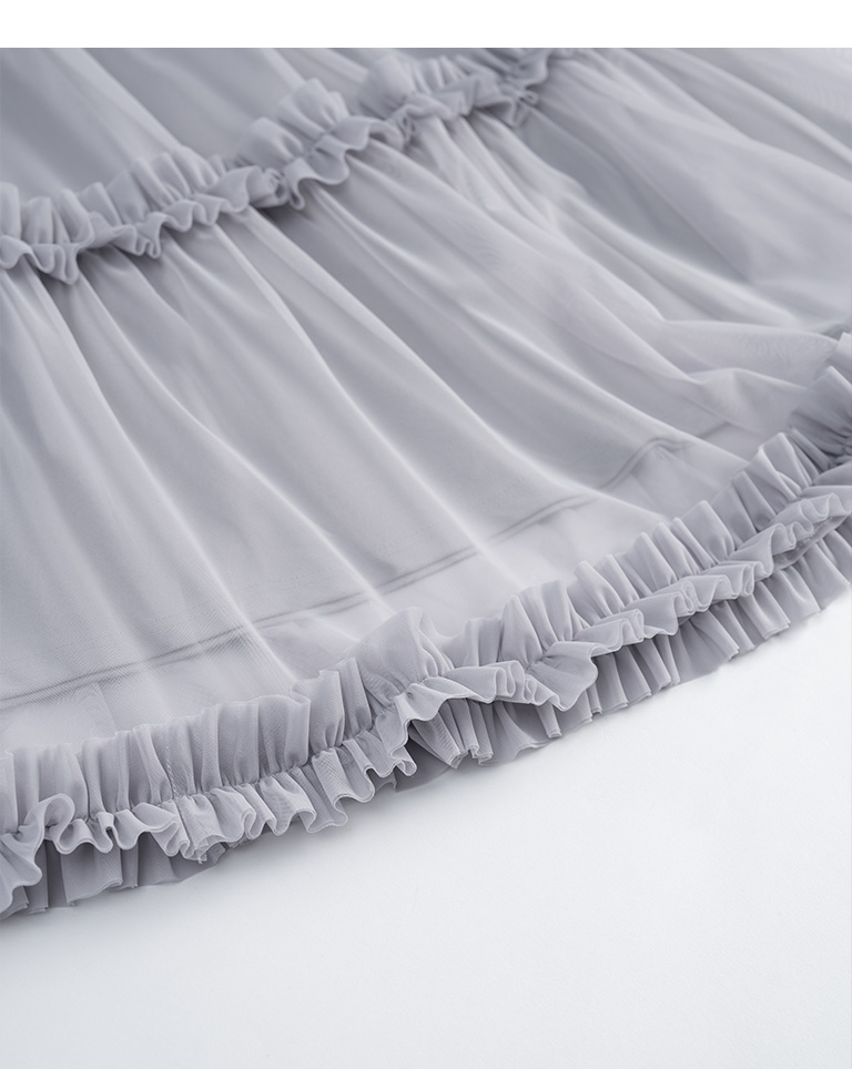 荷葉蛋糕傘襬網紗長裙 兩色售