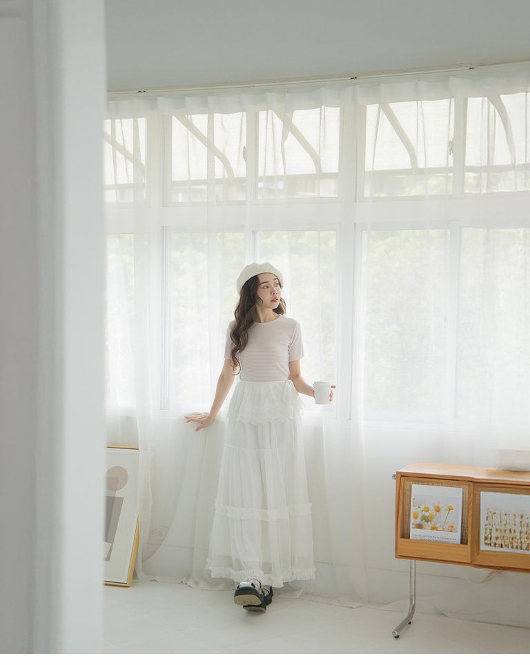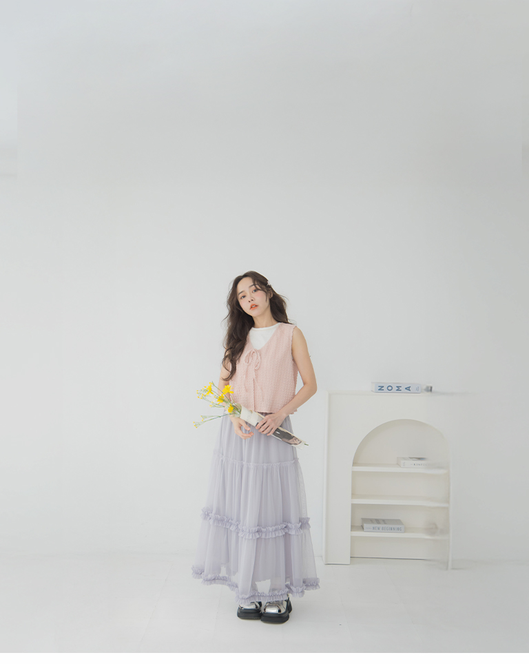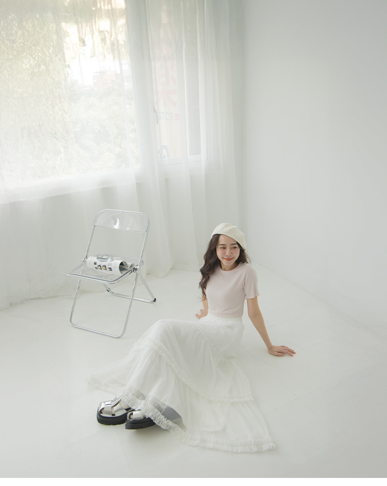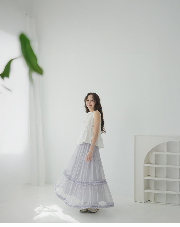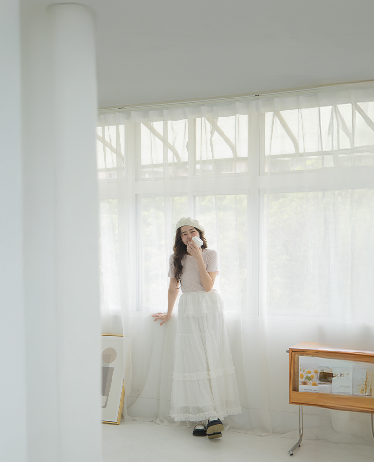 荷葉蛋糕傘襬網紗長裙 兩色售