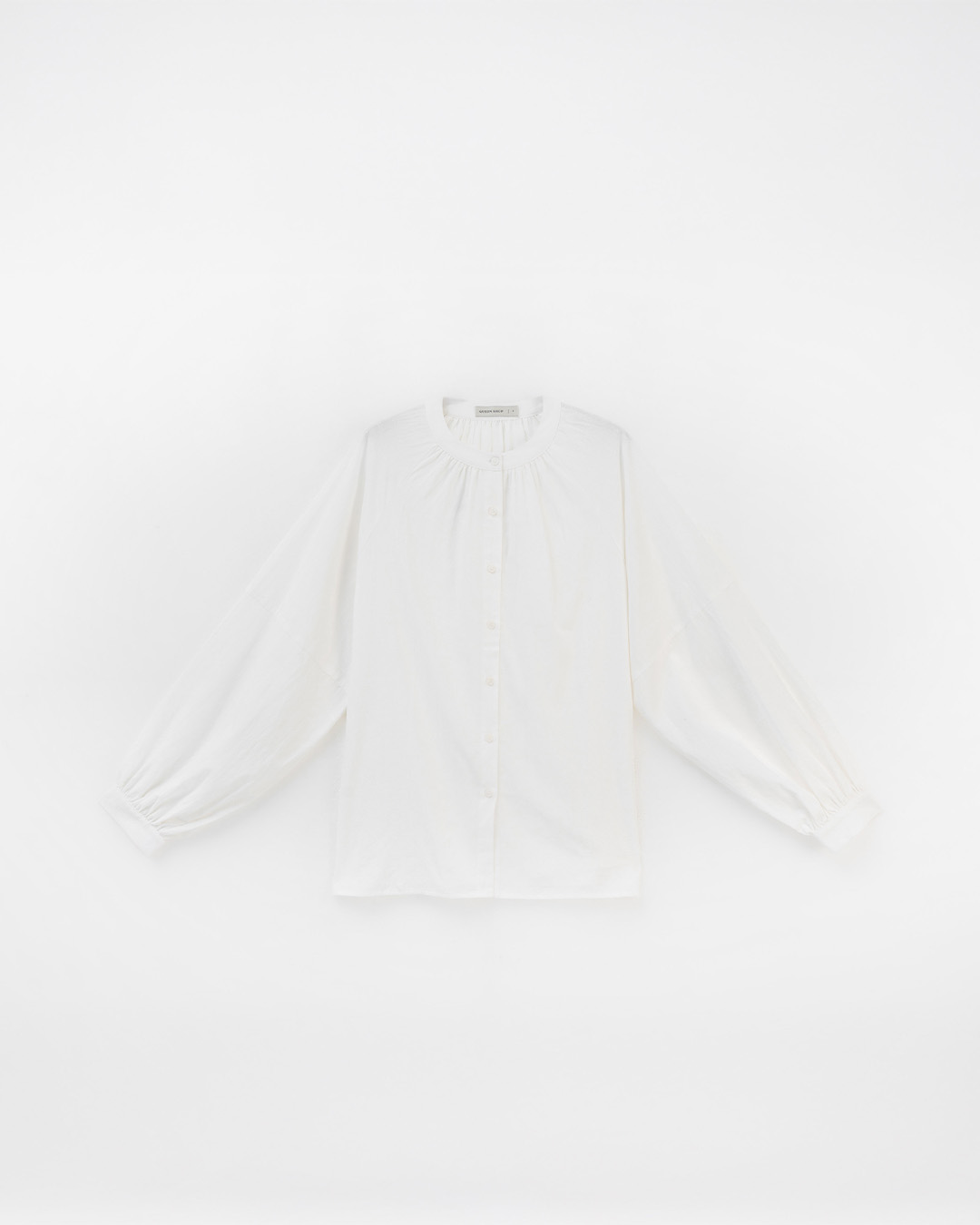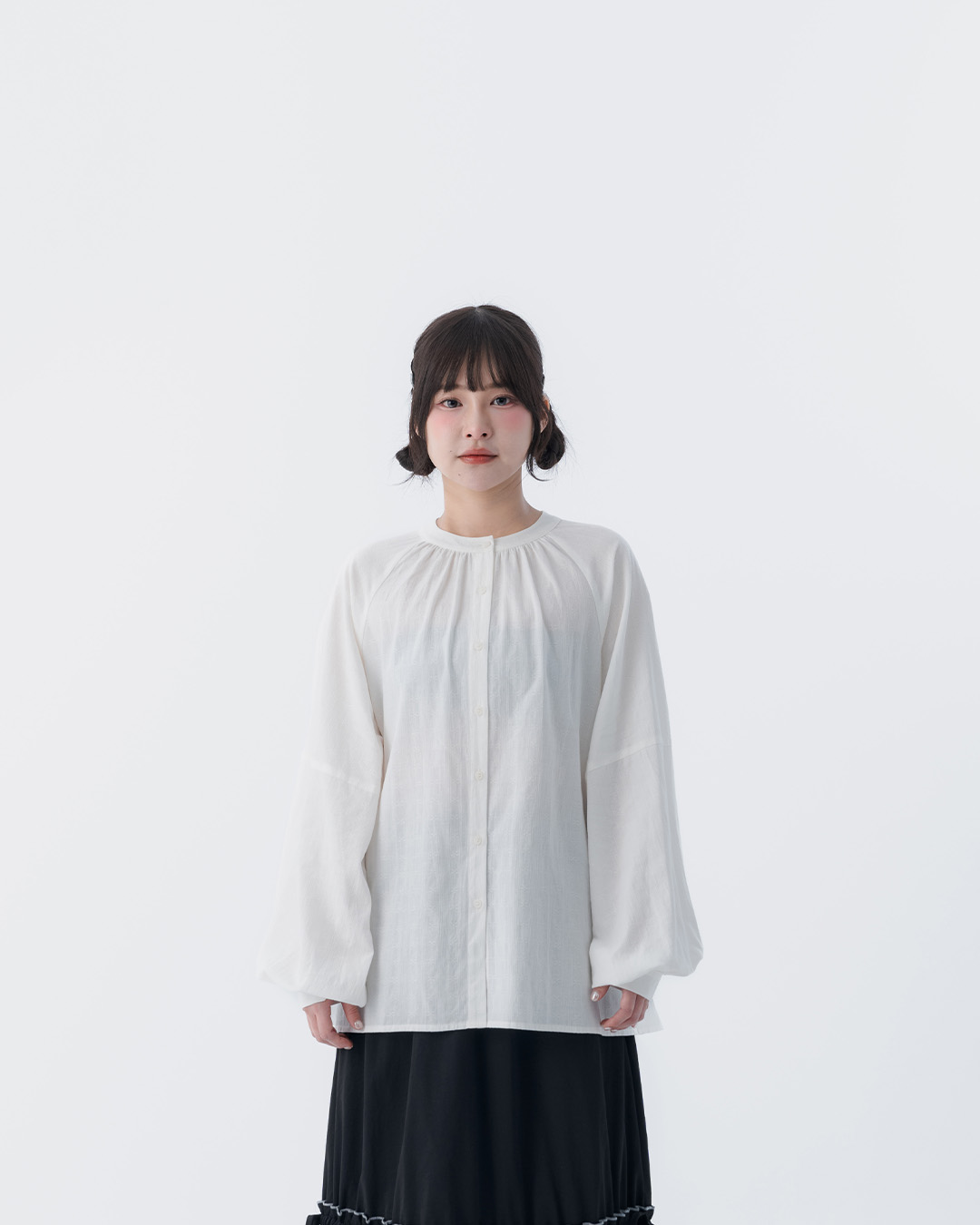 澎袖綁帶縮口設計中山領襯衫 三色售
